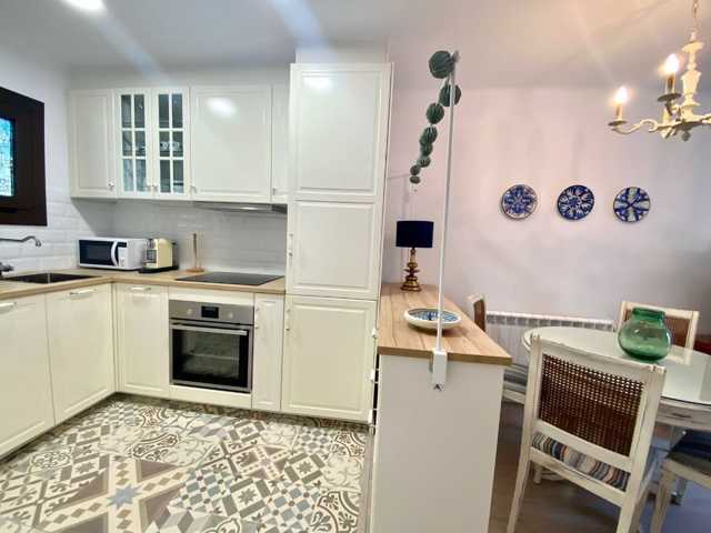 Sala d´estar-menjador amb cuina oberta i sortida a la terrassa, 2 dormitoris i un bany complert.