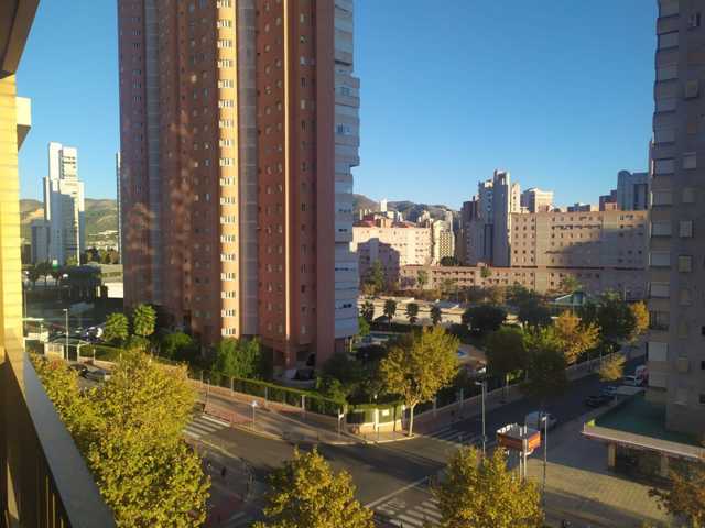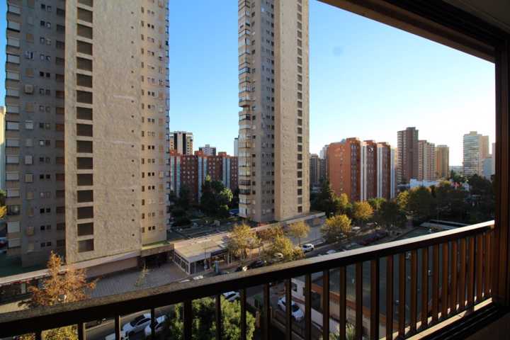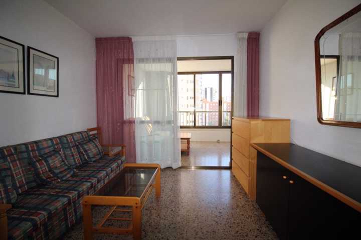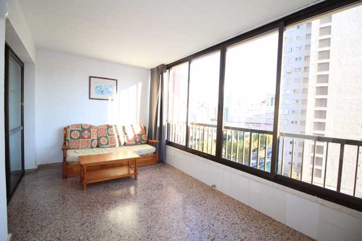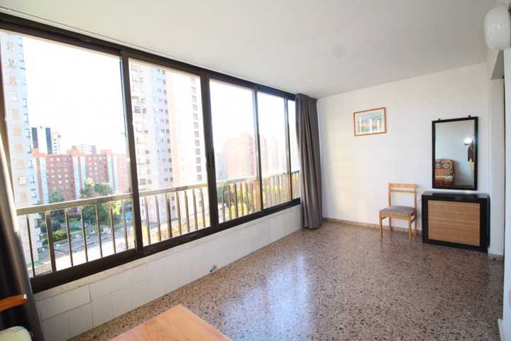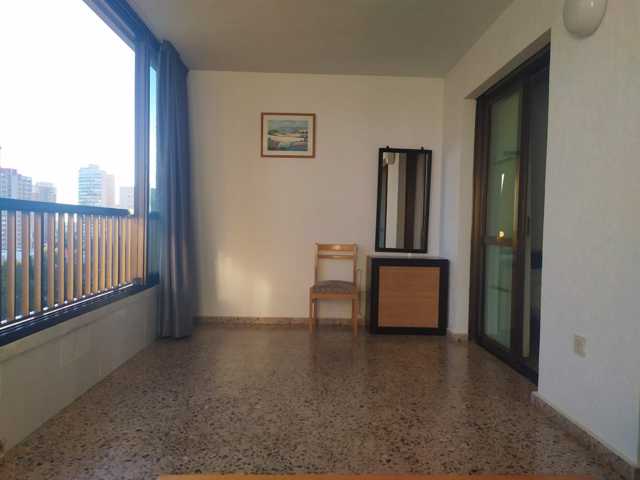 Apartamento en Benidorm zona Nuevos Juzgados, 60 m. de superficie, 15 m2 de terraza, 800 m. de la playa, una habitación doble, un baño, propiedad en ... buen estado, cocina equipada, carpinteria interior de aluminio, orientación sur, terrazo, carpintería exterior de doble cristal.