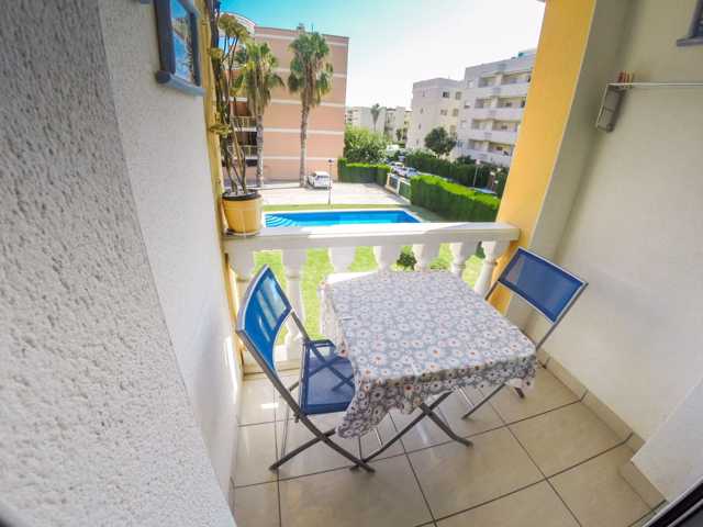 Extras: Amueblado, calefacción eléctrica, aire acondicionado, jardín comunitario con piscina y cocina de verano, plaza de parking, orientación sur.