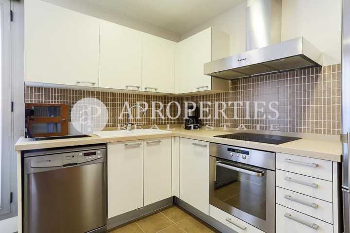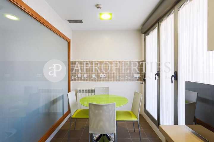 La vivienda se distribuye en un salón comedor con cocina contigua y, ambos, con salida directa a una espaciosa terraza orientada al este. La moderna cocina dispone además de espacio suficiente para comedor de diario.