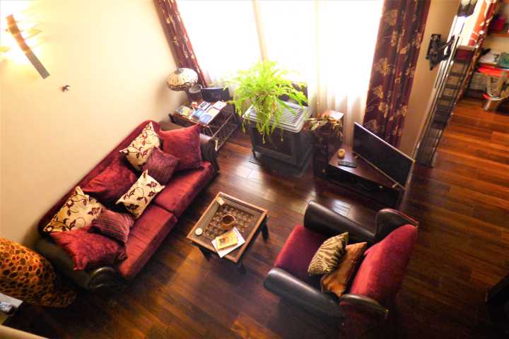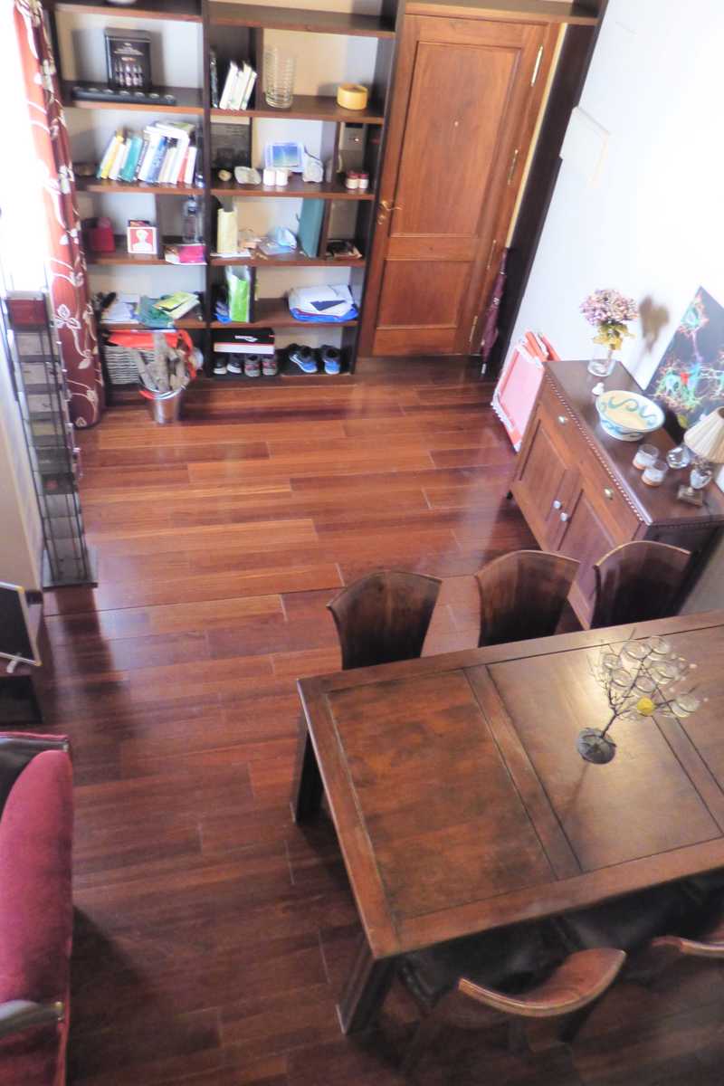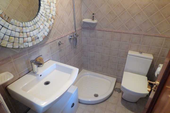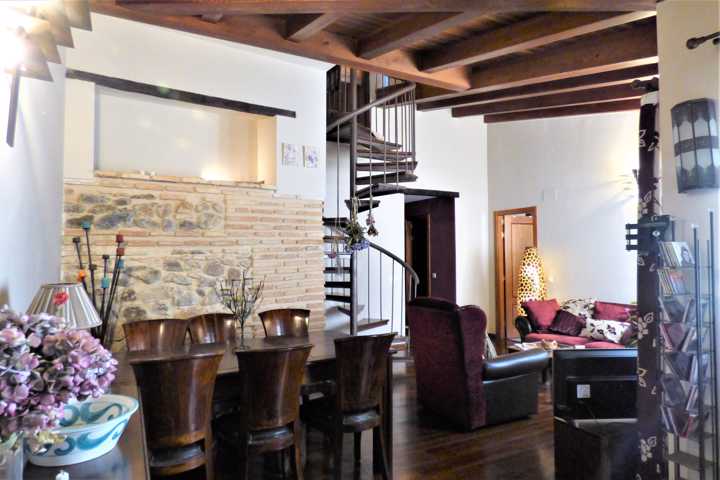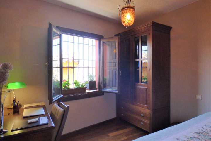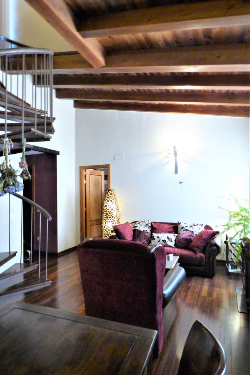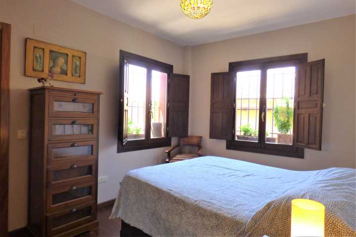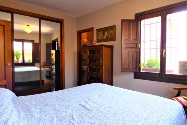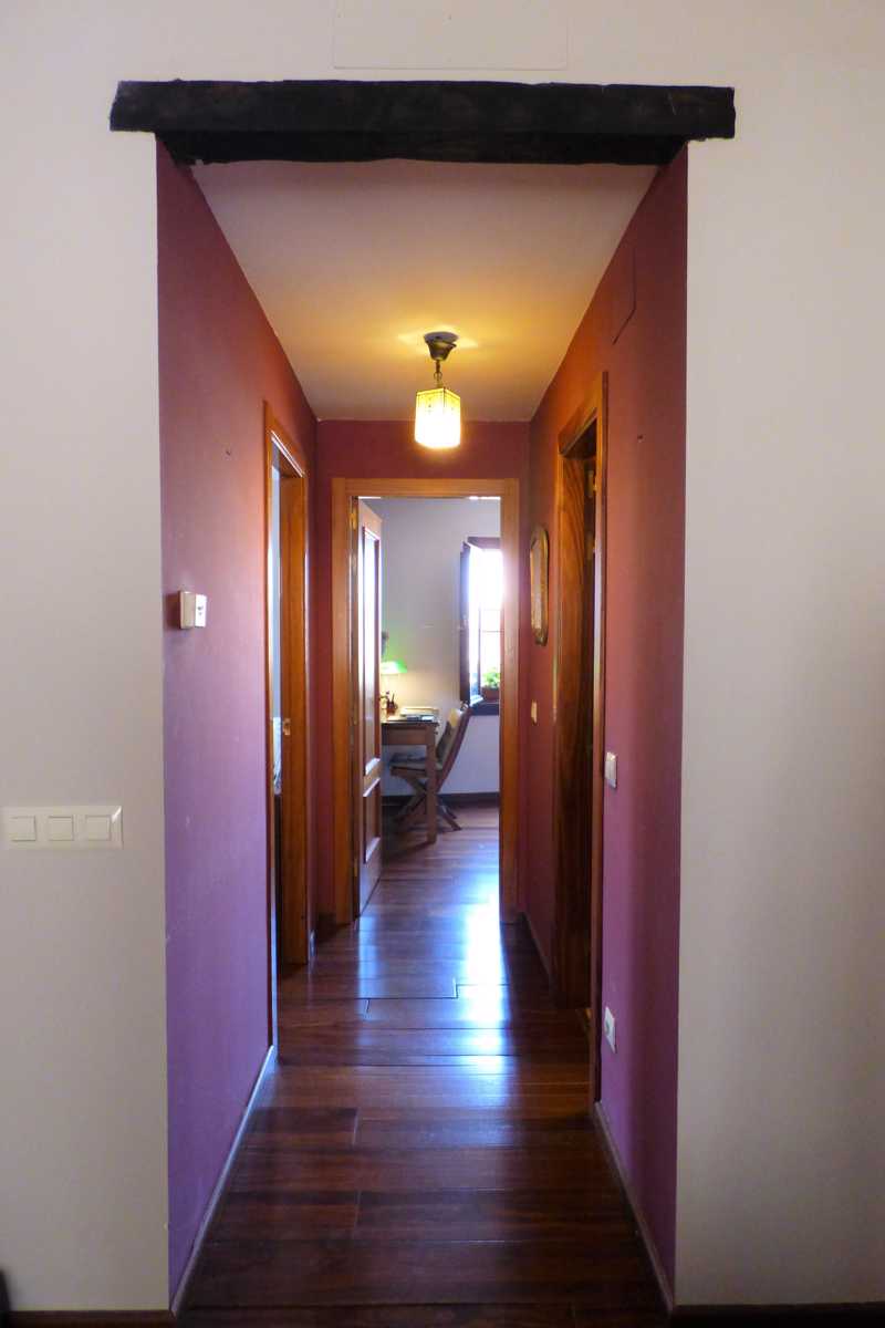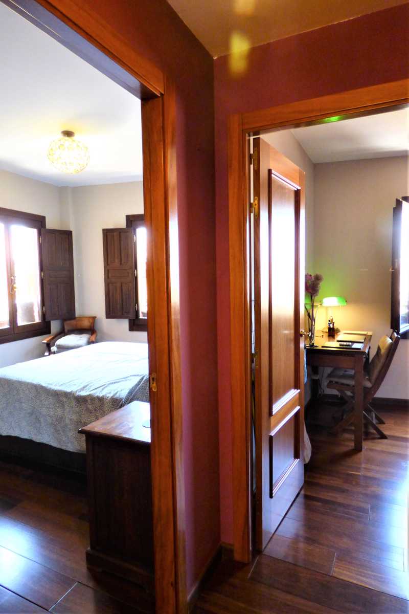 Suelo de tarima maciza, pintura lisa, techos altos, en salón, alicatados de primera calidad, ventanas de madera abatible con vidrio doble.