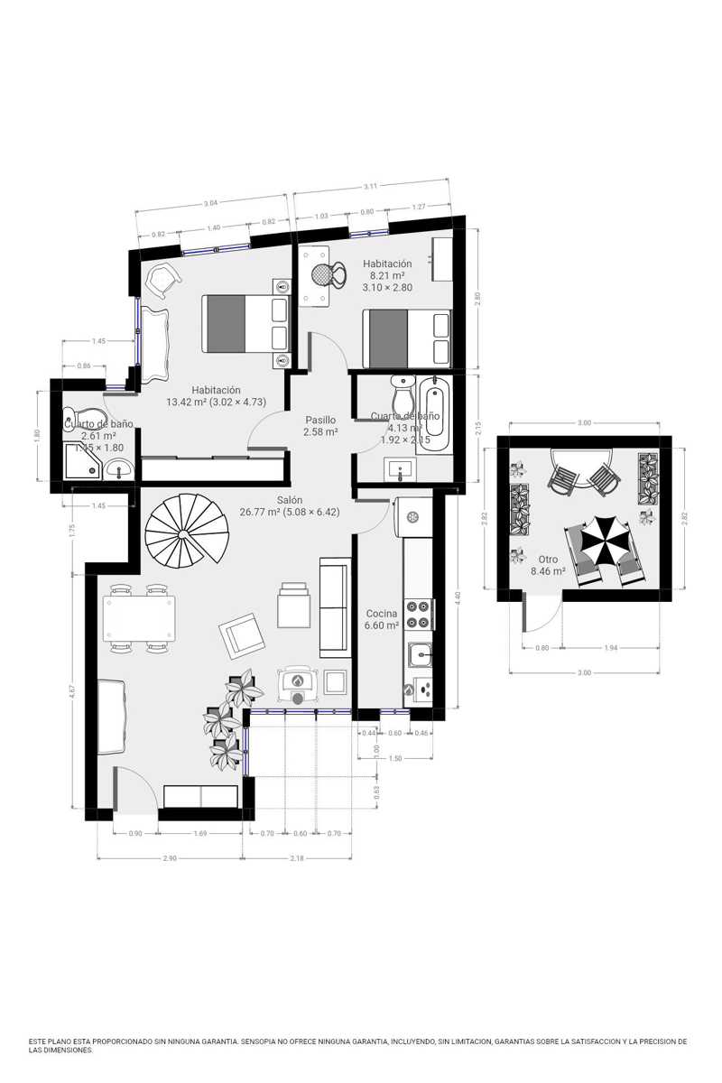La vivienda esta en perfecto estado de conservación y con materiales de primera calidad. Distribución; hall de entrada, salón comedor, cocina amueblada con electrodomésticos, 2 dormitorios, 2 baños. Uno de los baños en suite en el dormitorio principal, con plato de ducha, y el otro con bañera.