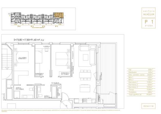 Adaptándonos a la nueva Calidad de Vida, en EDIFICIO RICALLOR hemos conseguido que todas las viviendas disfruten de un extraordinario espacio exterior, un CONFORT VITAL con unas terrazas que van desde los 15m2 hasta los 145m2.