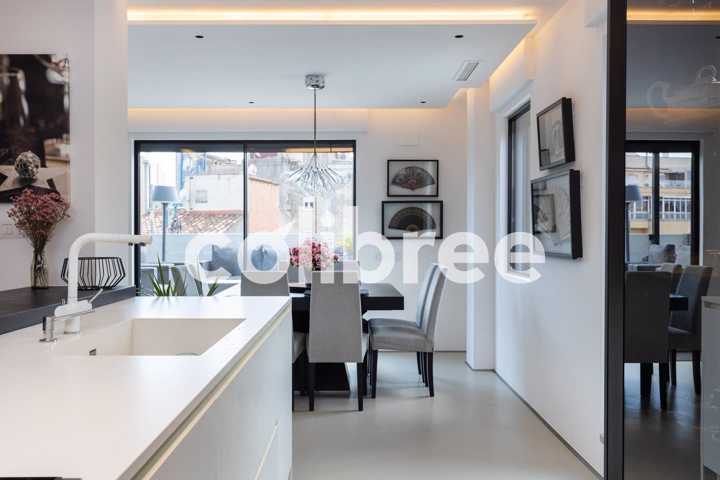 Reforma completa del 2018, el inmueble se compone de 2 habitaciones, una de ellas con baño, un pequeño estudio y un segundo baño y lavadero. La vivienda tiene un total de 120 m2 más la ya mencionada terraza. El piso es muy luminoso y confortable. Cocina integrada en salón, suelos de microcemento con calefacción radiante, aire acondicionado por conductos. Incluidas en el precio dos plazas de parking en finca, una simple y una doble con muy buen acceso y maniobrabilidad.