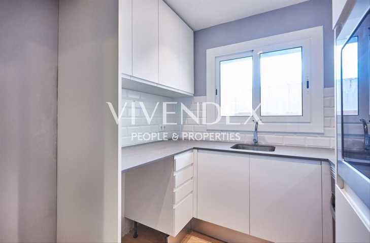 Funcional cocina con mucha luz natural, totalmente equipada y a estrenar con electrodomésticos como, placa vitrocerámica, horno y microondas. A continuación una galería exterior independiente y descubierta.