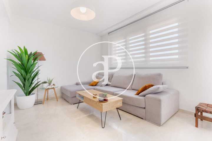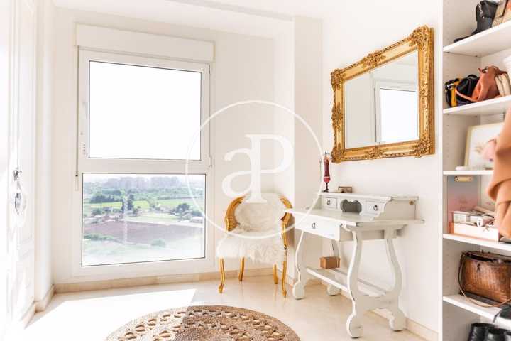 La vivienda se encuentra en uno de los barrios más nuevos y con más prestigio de la ciudad de Valencia, tranquilo en zona residencial, rodeado de urbanizaciones y parques, pero a su vez, próximo a centros comerciales, restaurantes y cafeterías.