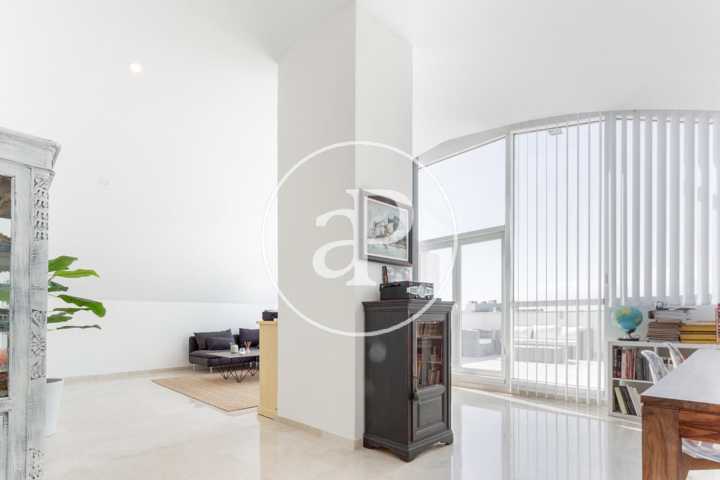 El ático consta de 261 m2 con ...struidos, que se reparten en una primera planta en 3 dormitorios con armarios empotrados y 2 baños, cocina totalmente equipada con lavadero y un amplio salón comedor con grandes ventanales con vistas impresionantes. En la segunda planta tenemos un gran estudio de 70 m2 con acceso a una gran terraza de 32 m2 desde la que admirar las vistas de mar, montaña, ciudad de las Ciencias, etc.