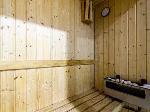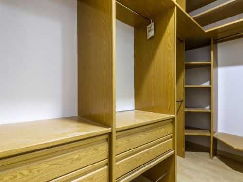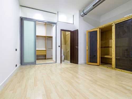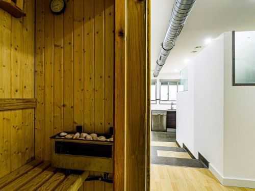 El dormitorio en suite con el espectacular baño, su enorme vestidor y su sauna finlandesa, se desplazan al interior en todo un amplio espacio, manteniendo la misma estética del resto de la vivienda, con algo más de madera presente en la zona del vestidor y en el diseño de la sauna finlandesa, nueva a estrenar. La zona del vestidor es muy amplia y separada del dormitorio por una puerta corredera de tres láminas.