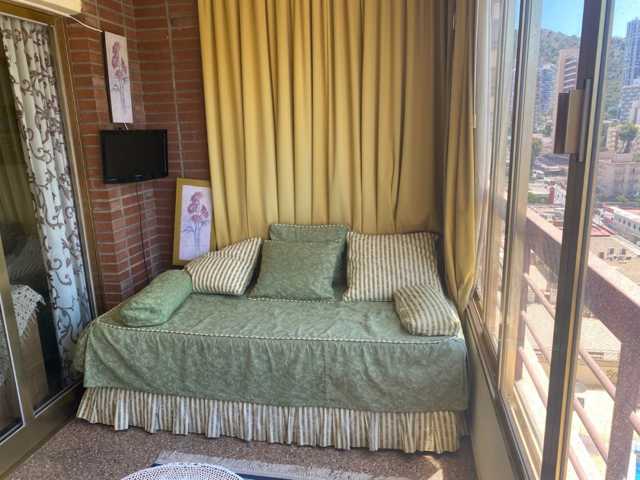 Estudio en Benidorm zona Rincon de Loix Llano, 38 m. de superficie, 12 m2 de terraza, 450 m. de la playa, un baño, propiedad en buen estado, cocina equipada, carpinteria interior de aluminio, orientación sureste, gres, carpintería exterior de aluminio.