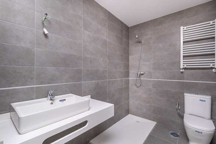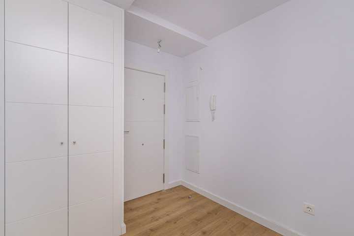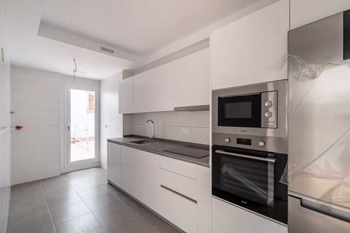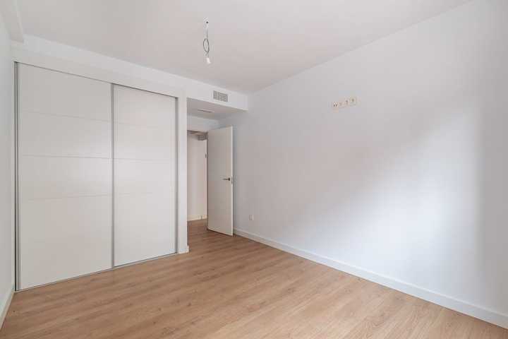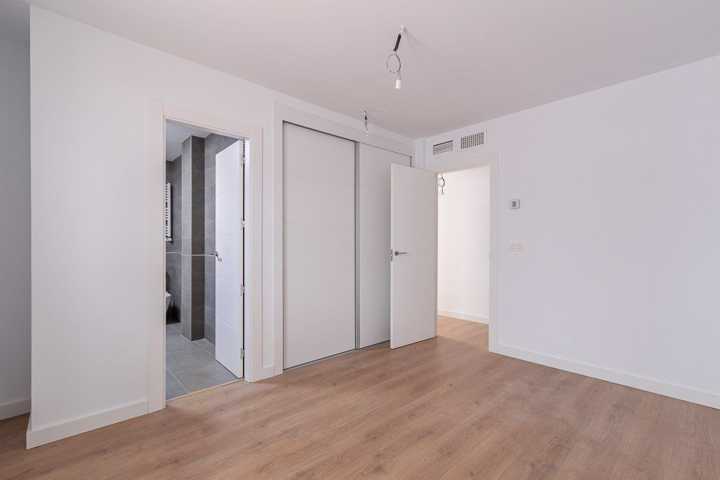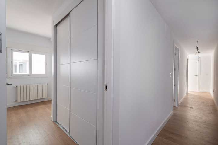 Carpintería exterior de aluminio con rotura de puente térmico. Persianas enrollables de aluminio. Puerta entrada a vivienda blindada con cerradura de seguridad. Puertas interiores lisas, acabado lacado blanco. Armarios empotrados de acabado en línea con el resto de carpintería, con balda superior, cajoneras y barra de colgar. Pavimento laminado en salón, dormitorios, vestíbulos, distribuidores e incluso en cocinas integradas en salón-comedor. Gres esmaltado en cocinas y baños. Cocina amueblada con muebles altos y bajos.Mostrar más