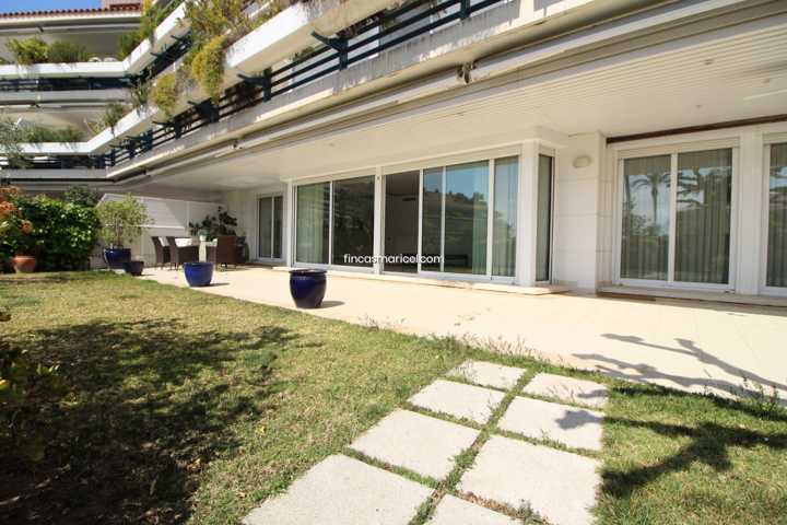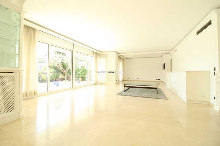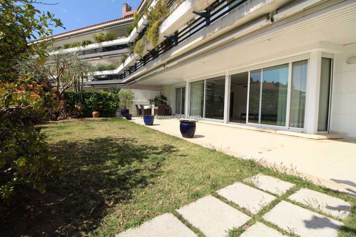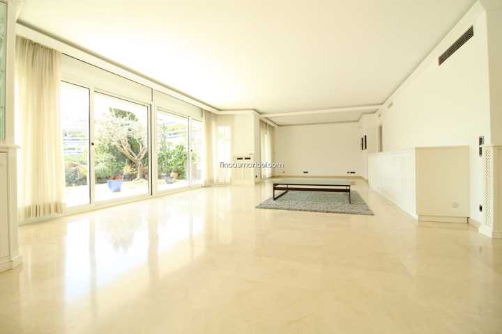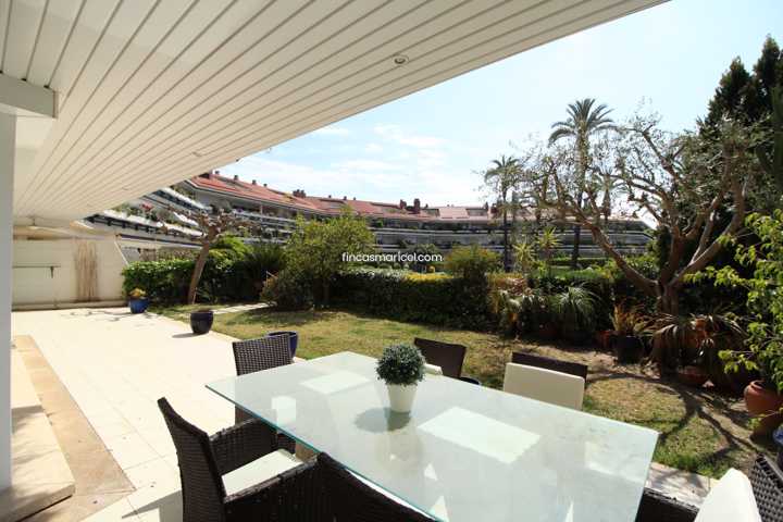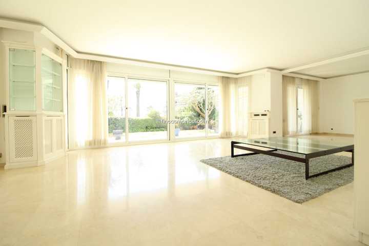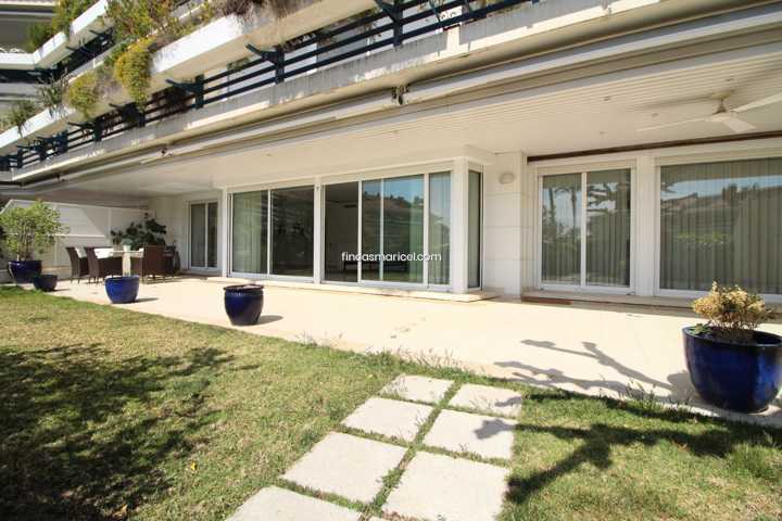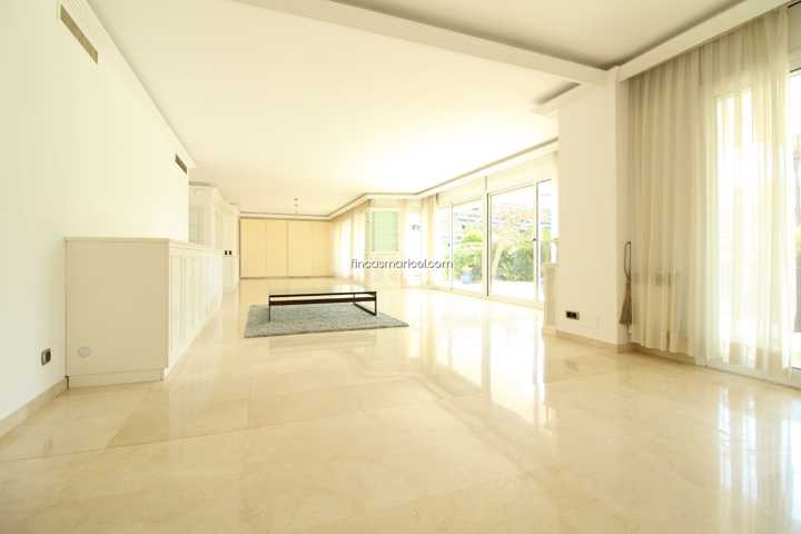 Espectacular planta baja con increíble salón de 80 m2 con grandes ventanales al precioso jardín privado de 150 m2 con vistas al mar. Salón con tres e ...spacios, suelos de mármol y muchísima luz todo el día.
