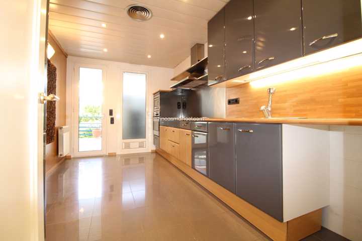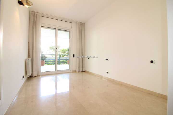 El piso de 180 m2 se distribuye en dos ambientes, la zona de dia con un amplio hall, cocina y lavadero con acceso a la terraza trasera de 60 m2 con vistas a la piscina, baño completo con ducha, gran salón comedor y jardín privado.