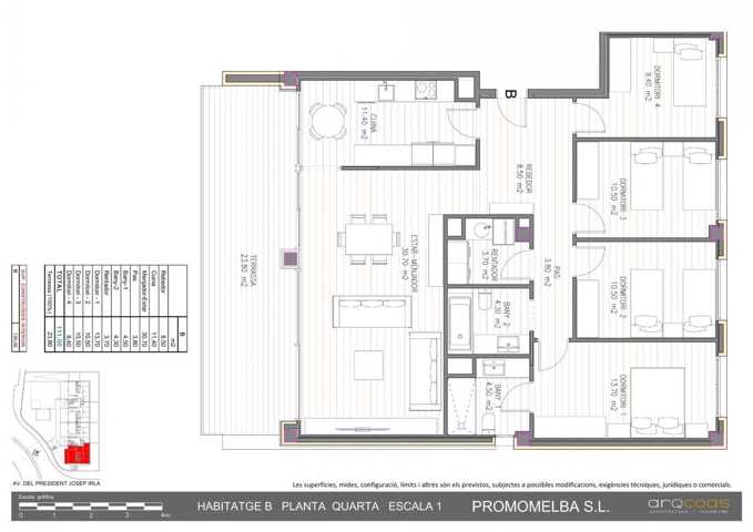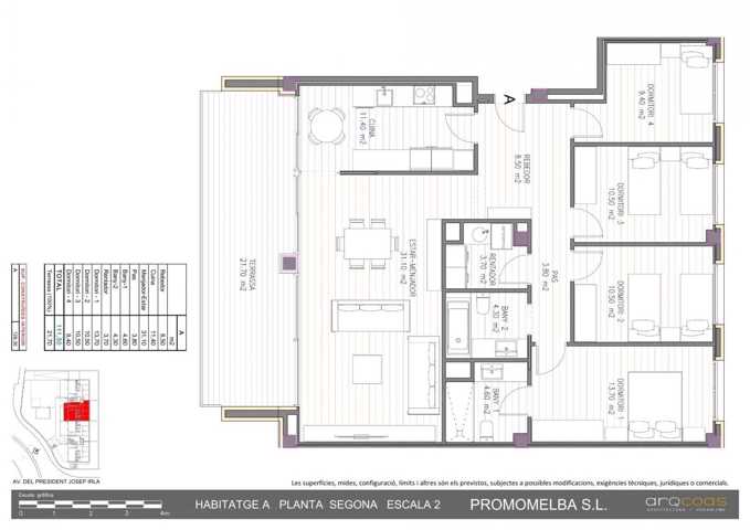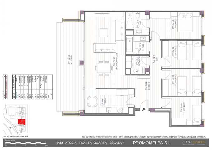 Podreu optar a ser propietaris de les diferents tipologies que us oferim, des de baixos amb jardí, fins àtics amb terrassa privada i badalot. T'agradarà saber que, tots els habitatges disposen de 4 dormitoris, dos banys, i el que és el millor, comptareu d'uns acabats de la millor qualitat del mercat proporcionats per PORCELANOSA.