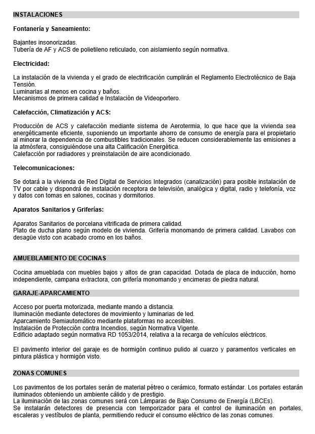 El piso dispone de suelo de tarima de madera natural, puerta blindada, ventanas con rotura de puente térmico y doble cristal Climalit, vídeo portero y calefacción por aerotermia con radiadores de aluminio.