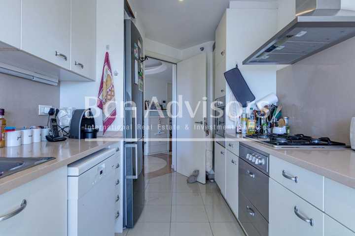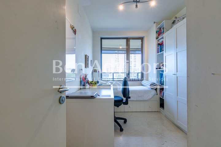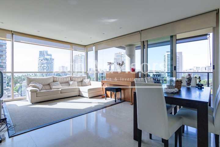 El sensacional salón-comedor dispone de grandes cristaleras que permiten la entrada de luz natural para crear un ambiente agradable. Tiene salida a la amplia terraza, el lugar ideal para relajarse al aire libre con fantásticas vistas panorámicas del mar, la ciudad y la montaña. La amplia cocina office tiene spacio para mesa y sillas y está equipada con electrodomésticos de alta gama: horno, frigorífico, lavavajillas, microondas, lavadora y secadora.