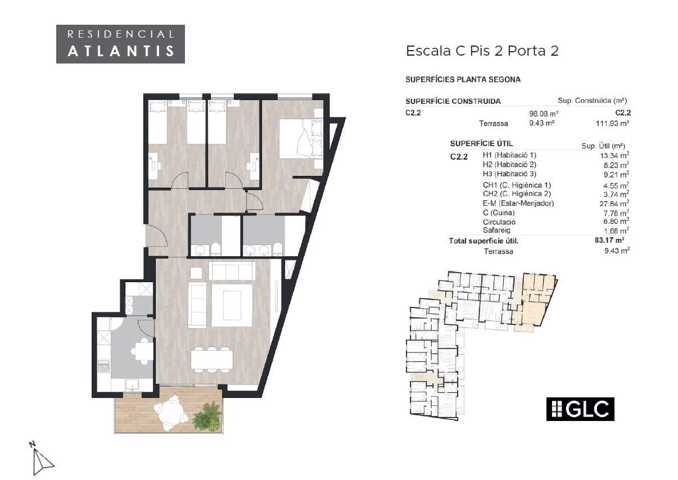 RESIDENCIAL ATLANTIS. Piso de 3 habitaciones, una de ellas doble con zona vestidor , dos baños, uno de ellos en la habitación suite, cocina office con ... zona lavadero a parte y gran salón comedor orientado al Sur con salida a terraza con vistas a la zona comunitaria y piscina.