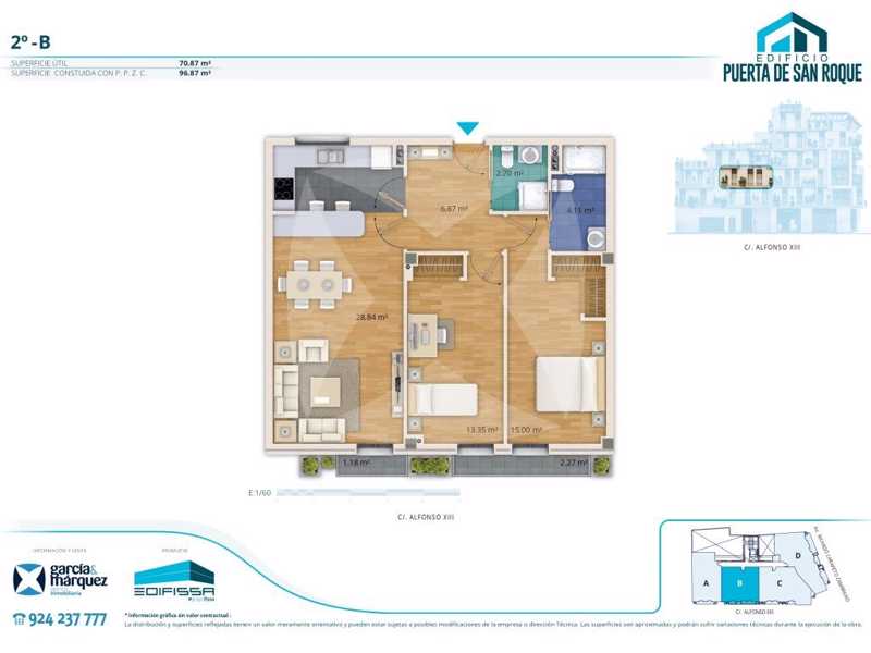 Amplio apartamento en venta con dos dormitorios y dos baños. Plazas de garaje y trasteros a estrenar. No lo dude, infórmese. #ref:26884