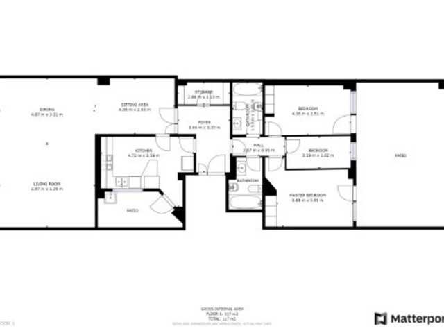 Un corto pasillo nos conduce a tres dormitorios (2 dobles, 1 individual) y dos cuartos de baño completos. Los dormitorios dobles tienen acceso a una terraza de 25 m2.