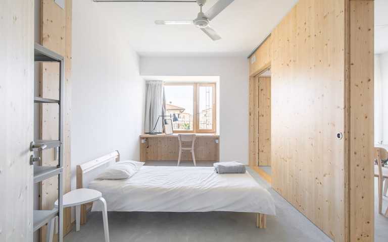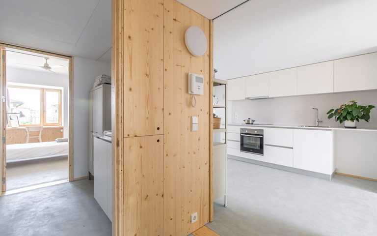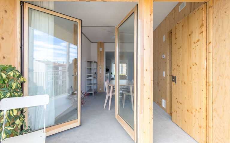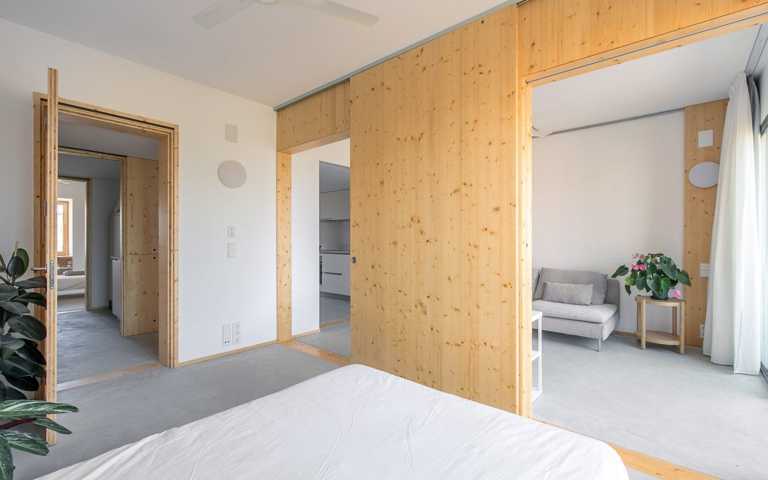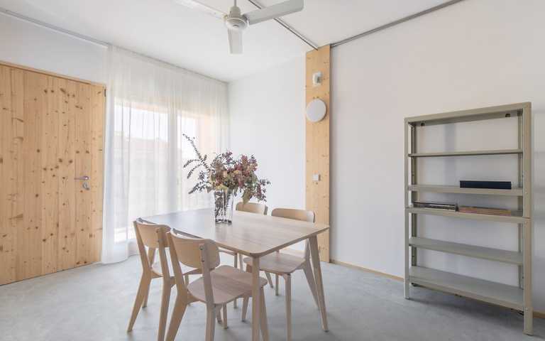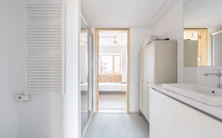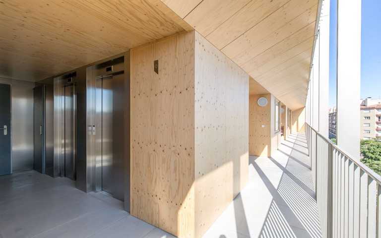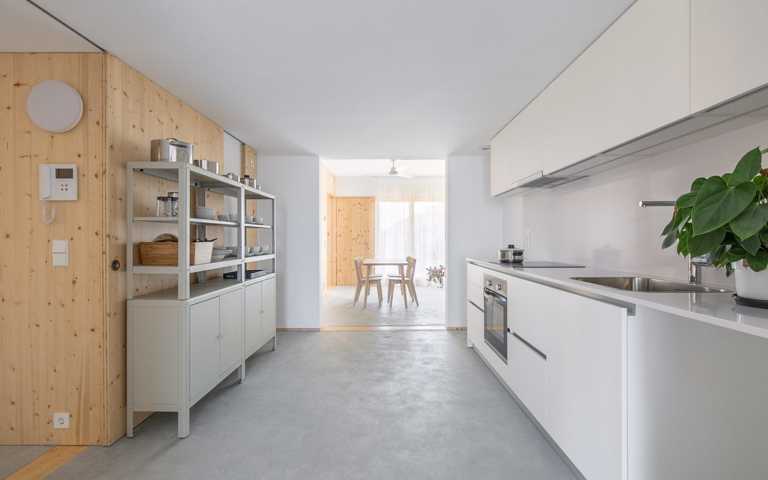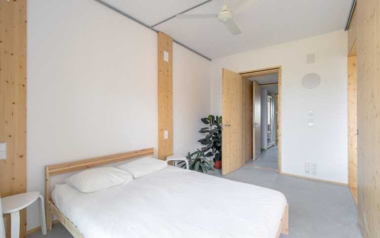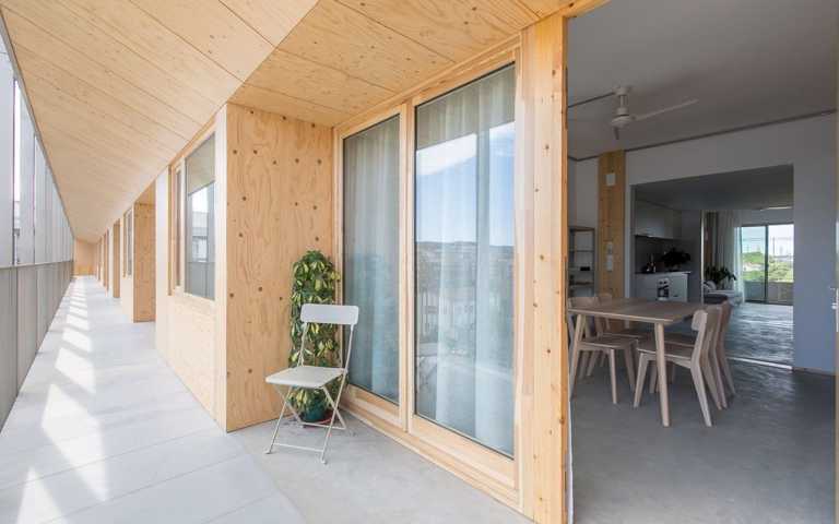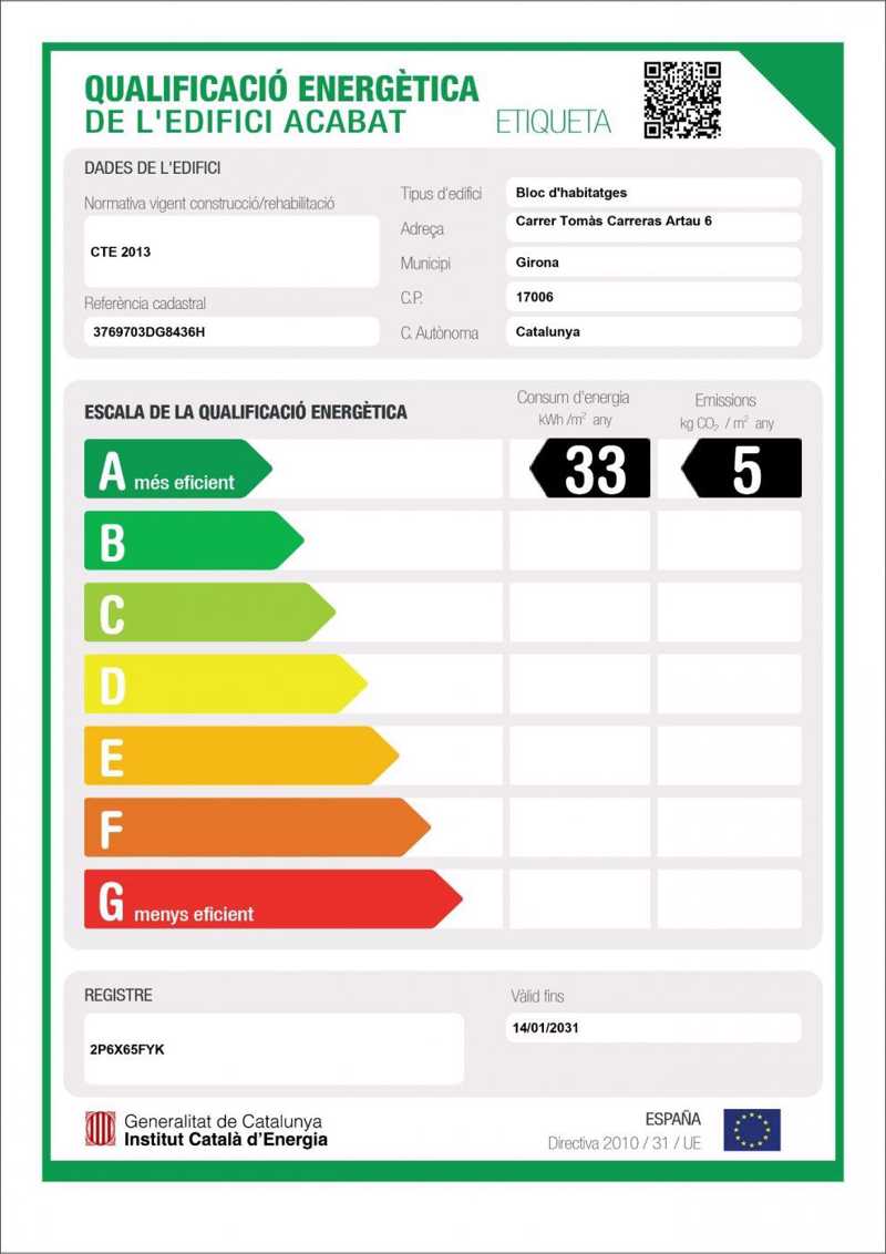 Se trata de una vivienda saludable gracias a los materiales orgánicos, entre los cuales hay la madera, que regula la humedad interior. Los sistemas instalados de aerotermia y la ventilación continua con recuperador de calor garantizan la calidad del aire interior. Dispone de la máxima calificación energética (A), con ventilación cruzada y un espacio semi-exterior que proporciona sombra en verano (terraza con persiana de cuerda) y calor en invierno (galería a sur). Se trata de un edificio de Consumo Casi Nulo.