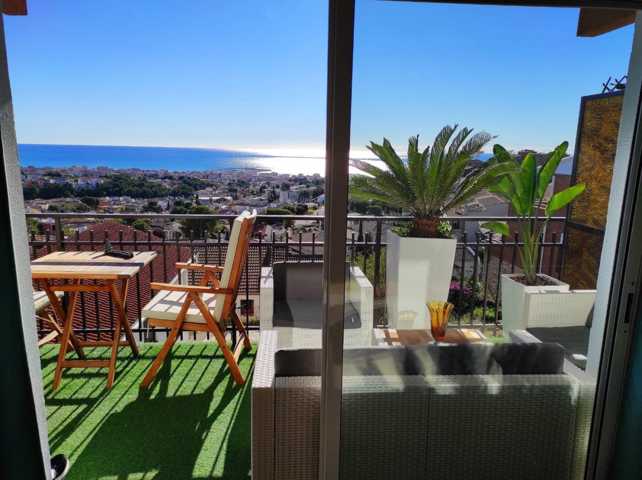 Piso todo exterior de dos dormitorios y baño completo, con vistas al mar de todas las estancias, con mucha luminosidad por su excelente orientación. I ...deal para todas la épocas del año, goza de unos acabados de lujo, con suelo porcelánico y paredes de piedra natural. Con una espectacular terraza de 20 m2 con vistas al Mediterráneo, se vende todo amueblado y con luminaria de íntegra de led, para que la factura de luz no sea un problema. Zona tranquila pero a pocos minutos de la playa y el centro del pueblo.Mostrar más