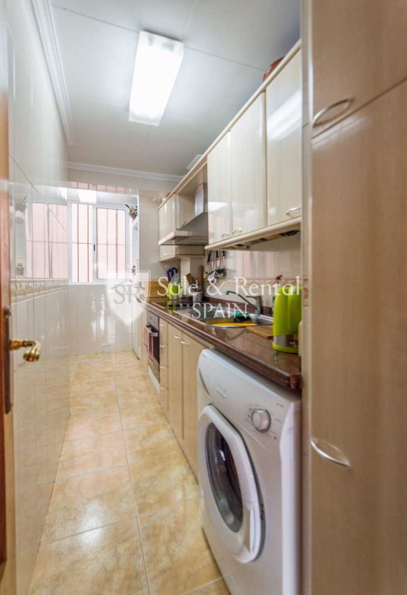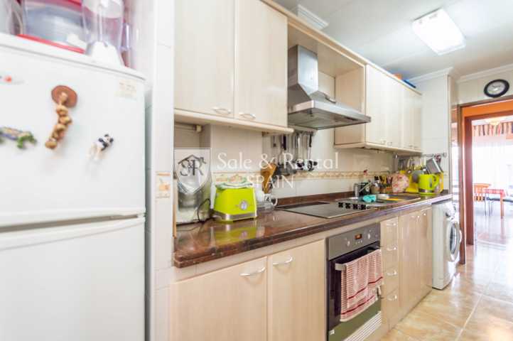 Al entrar encontramos un pequeño vestíbulo y un pasillo que nos lleva a una bonita cocina independiente, totalmente equipada y con zona de lavadero. Además dispone un amplio salón comedor, que comunica con la terraza, donde se puede poner una mesa para 4 comensales.