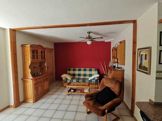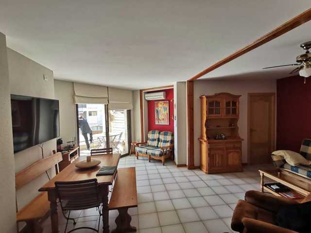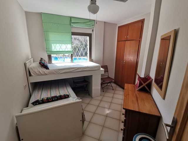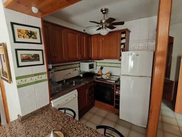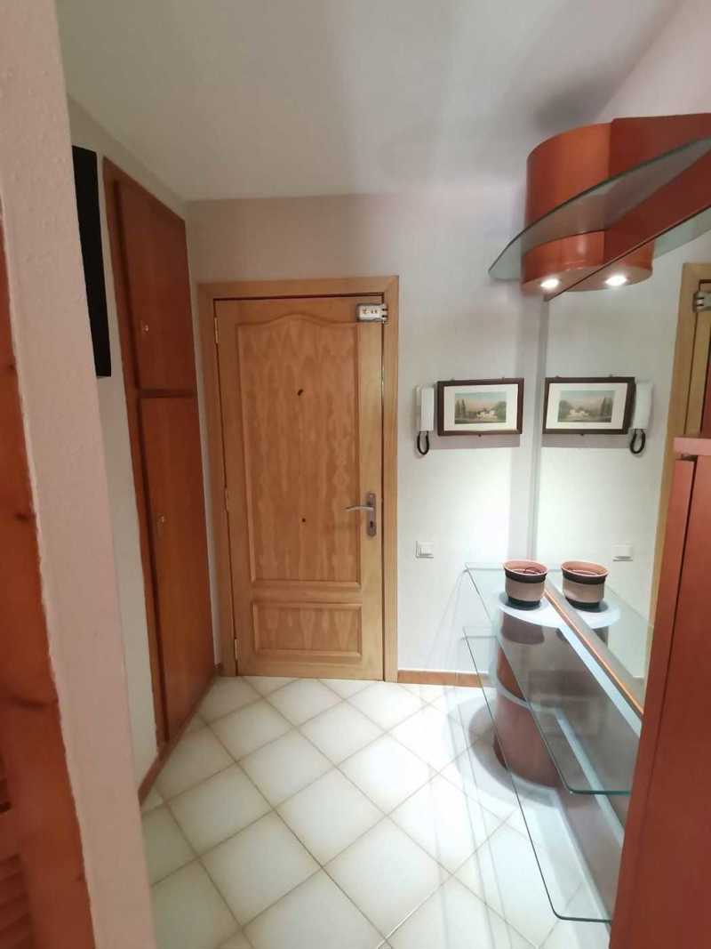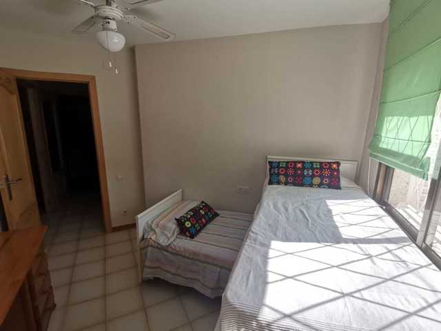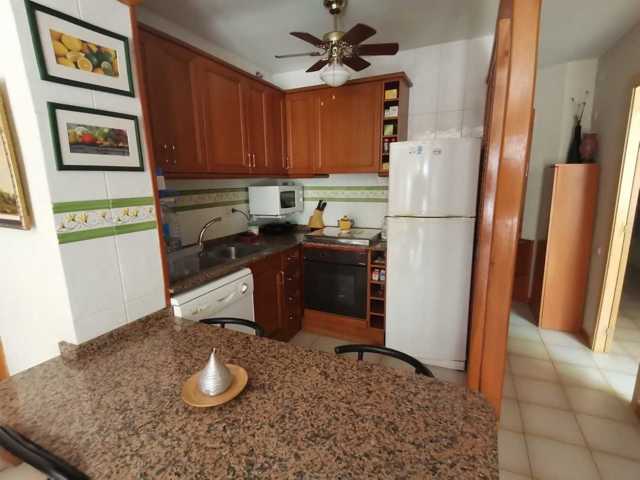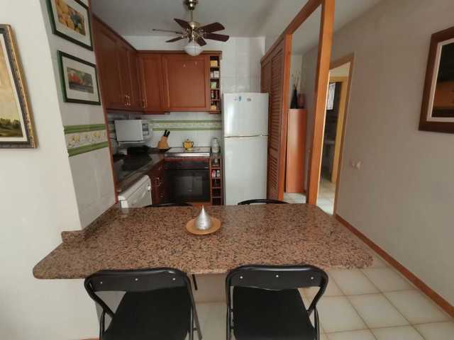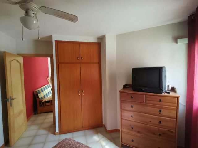 El piso se distribuye de Salón-Comedor con Cocina americana, dispone de bomba frío y c ...alor en el Salón y en uno de los dormitorios, al igual que ventiladores en todas las estancias. Desde el Salón accedemos a una amplia terraza de 8m2 con vistas a la zona comunitaria. Desde el Salón tambien se accede a al dormitorio principal, con armario empotrado. A través de un distribuidor accedemos a una gran habitación doble con armario empotrado y al baño completo.