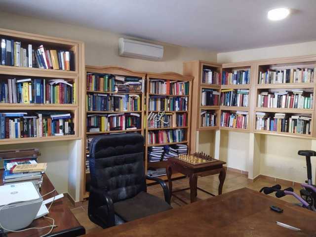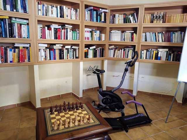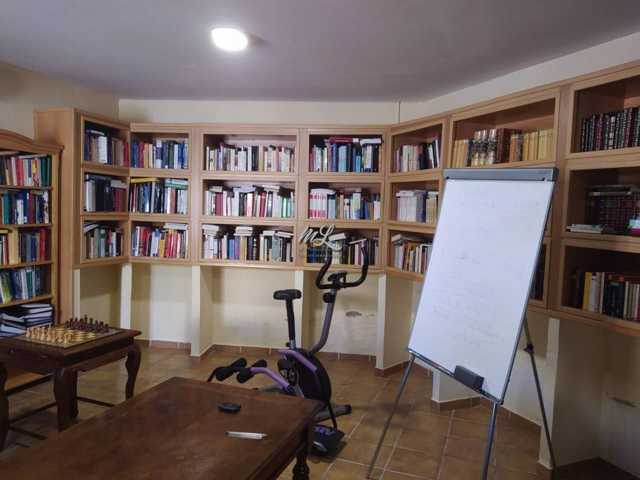 En la parte trasera nos encontramos con un amplio patio, con espacio para hacer piscina de obra y con un gran garaje; en la misma parte trasera, pegado al garaje, tenemos una habitación independiente, actualmente con función de biblioteca y una bonita leñera.