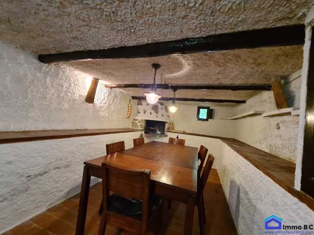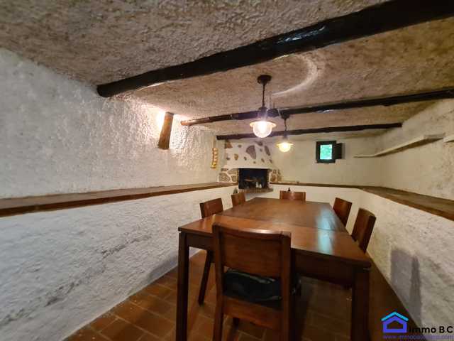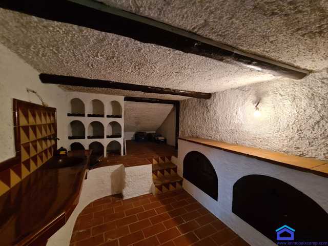 En el garaje accedemos a la bodega de 70 m2, donde se encuentra una zona de comedor con chimenea.