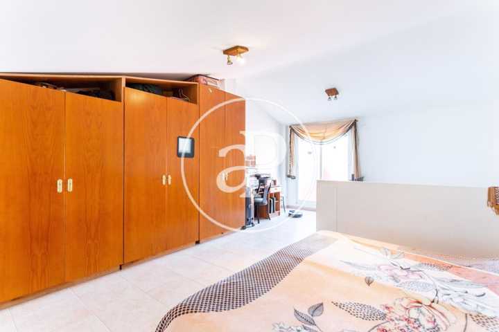 Desde el salón, subimos a la planta primera donde encontramos dos dormitorios dobles, uno de ellos con terraza, un cuarto de baño completo, la habitación principal con baño en suite y acceso a una amplia terraza, y otra terraza acristalada. En la planta superior encontramos una amplia buhardilla con terraza, muy luminosa, con una gran armariada.