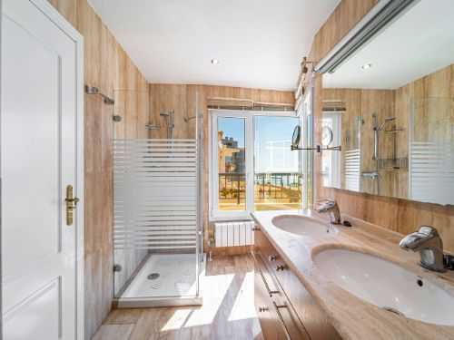 A la 1ª planta podemos acceder por escaleras o bien en ascensor, el cual, está instalado desde el sótano hasta la última planta de la vivienda. Una vez entras en la 1ª planta nos encontramos con una suite con baño completo, tres habitaciones más y otro baño, todas las estancias tienen armarios empotrados. También podemos disfrutar en esta 1ª planta de una agradable terraza con vistas al mar.