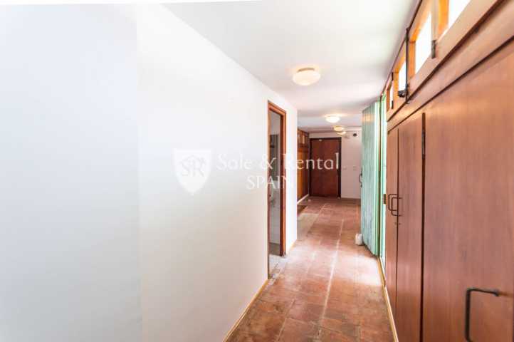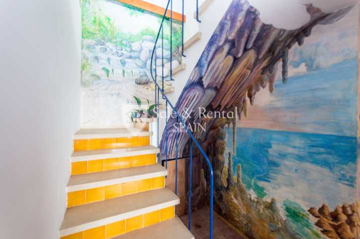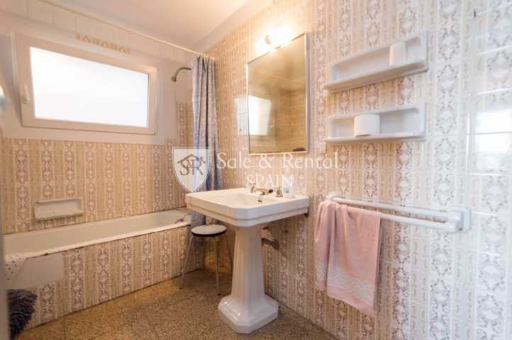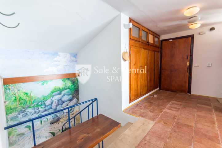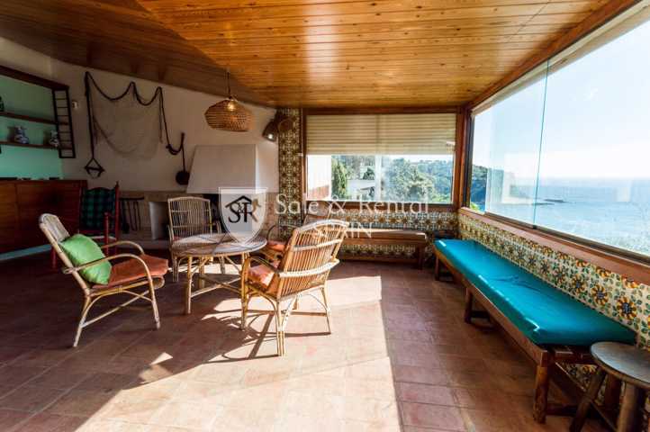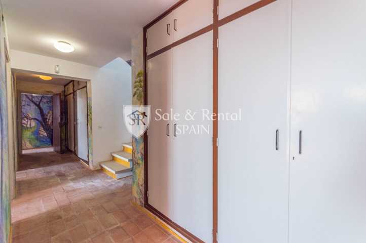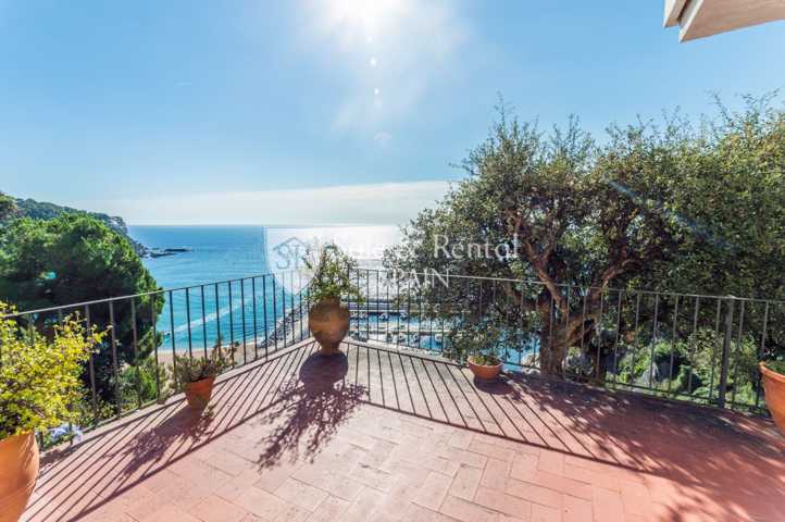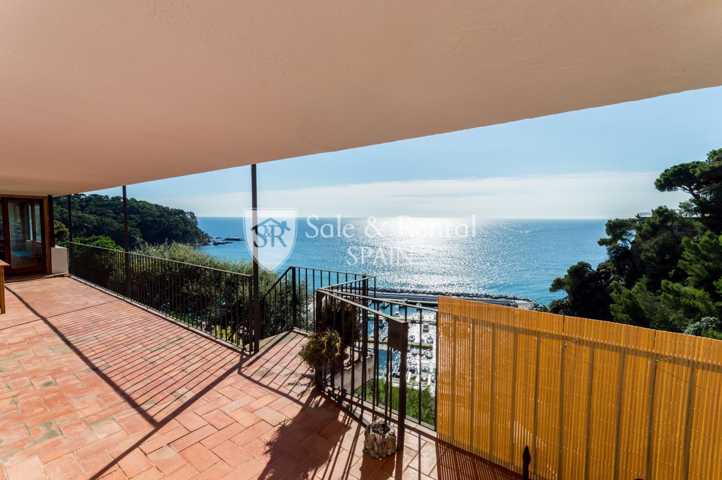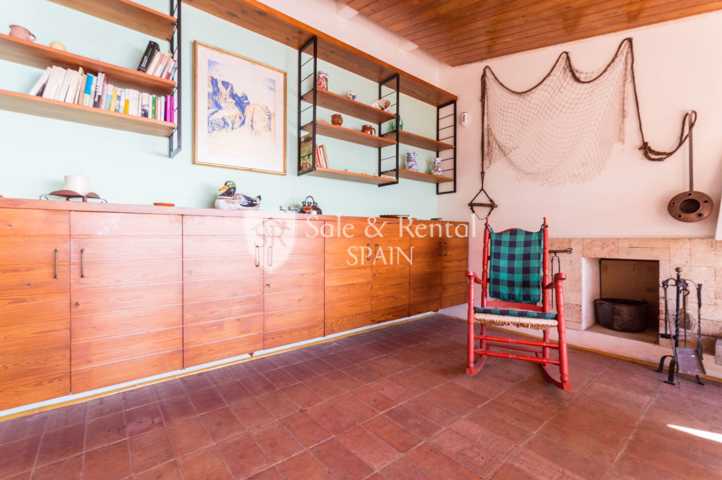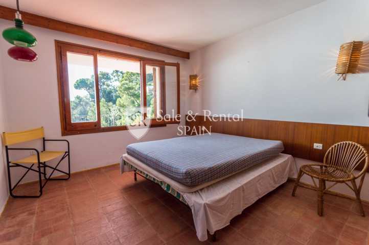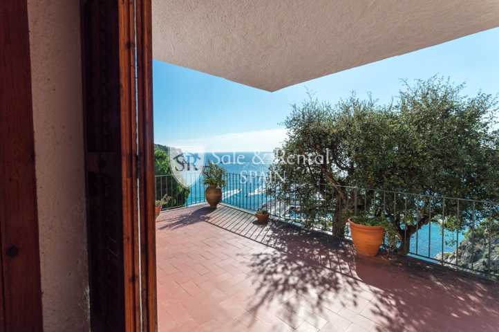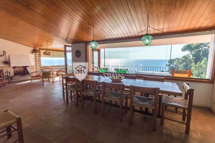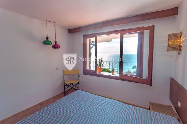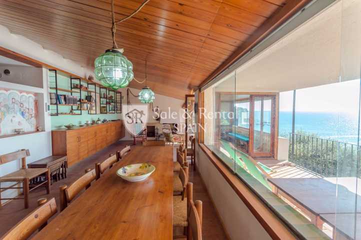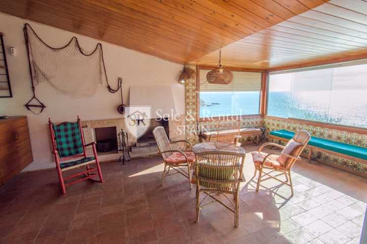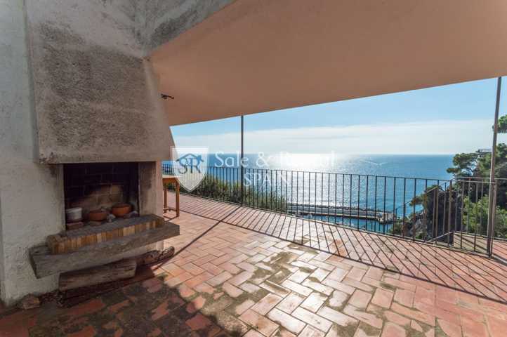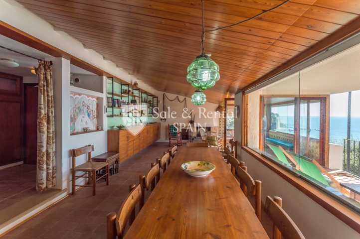 La casa tiene un bonito estilo típico mediterráneo y se encuentra de origen, con un total de dos plantas. Al entrar encontramos un garaje y una plaza de aparcamiento exterior. En el piso principal encontramos una gran sala de estar con espectaculares vistas frontales al mar, gracias a sus grandes ventanales en la zona de salón comedor. El salón dispone de chimenea y salida a un gran terraza con fabulosas vistas, con una zona de barbacoa y conexión con el otro piso y la zona de jardín.