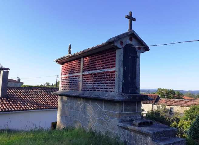 La finca está completamente cerrada, con arboles frutales y ornamentales además de un hórreo.