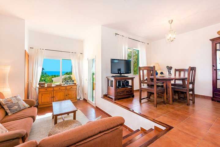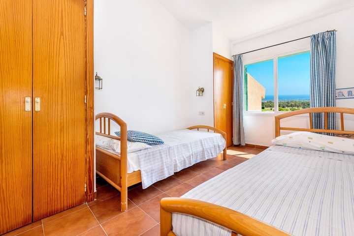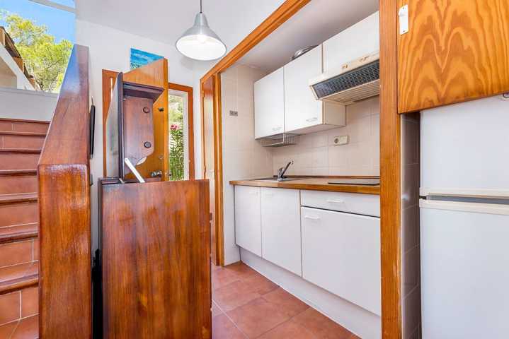 Disfrutarás de unas vistas de ensueño, verás toda la costa de Cala d´Or y Porto Colom. Este fabuloso adosado consta de primera planta con salón-comedor con salida a una fantástica terraza con vistas, cocina abierta totalmente equipada y un cuarto de baño. En la segunda planta nos encontramos con dos habitaciones dobles con baños en suite en ambas y armario empotrados.