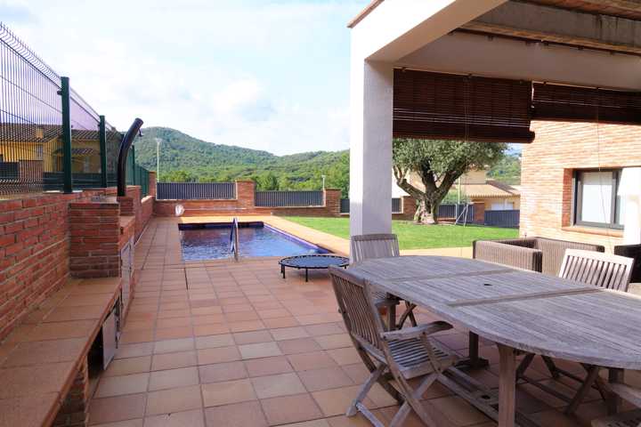 Casa independiente en Fogars de la Selva. 398m² construidos y 640m² de ...parcela. Diseño moderno, soleada, con luz y vistas. Consta de recibidor, comedor, sala de estar, cocina independiente con zona de comer y despensa, 4 habitaciones (la principal tipo suite), sala de juegos, despacho, 2 baños, lavabo, lavadero, trastero, garaje grande y terrazas. Jardín con pérgola frente a la cocina y el comedor, piscina y zona de barbacoa. Acabados de calidad y equipamiento de primeras marcas, fachada de obra vista, calefacción por gas natural, suelos de gres porcelánico y parquet, cierres de aluminio y doble cristal con corte térmico, persianas y portales automatizados, etc.. Estado de conservación impecable, a punto para entrar a vivir. Zona residencial tranquila, cerca de la escuela y del ayuntamiento. Muy buena mobilidad, a pocos minutos de la montaña, del mar y del acceso de autopista a Barcelona o Girona.