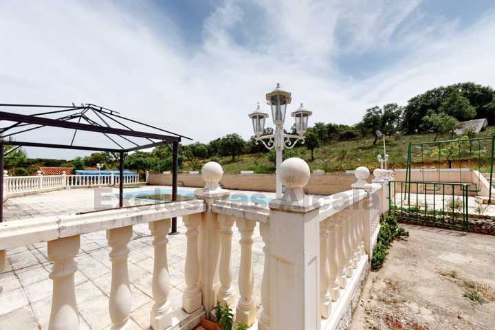AL ENTRAR EN LA FINCA ENCONTRAMOS DIVERSOS ARBOLES FRUTALES, ALMENDROS, ROSALES, HIGUERAS, UN GARAJE PARA 3 COCHES, LA PISCINA DE AGUA SALADA DE POLIESTER ESTA CONSTRUIDA EN UNA TERRAZA DE UNOS 200 M2 CON UN CENADOR DE 12 M2, TIENE 10 METROS DE LARGO Y UN DEPOSITO DE AGUA PARA CALENTARLA.