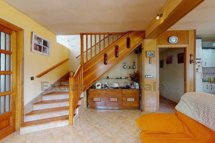 LA VIVIENDA TIENE TRES ENTRADAS, LA ENTRADA PRINCIPAL CON UNA TERRAZA DE UNOS 8 M2 DA EN UN PASILLO Y EN LA PRIMERA PLANTA DONDE ENCONTRAMOS LA COCINA AMERICANA CON EL COMEDOR Y CHIMENEA DE LEÑEA, 3 DORMITORIOS CON SUS ARMARIOS , UN BAÑO Y EL PORCHE ACRISTALADO DE UNOS 10 M2.