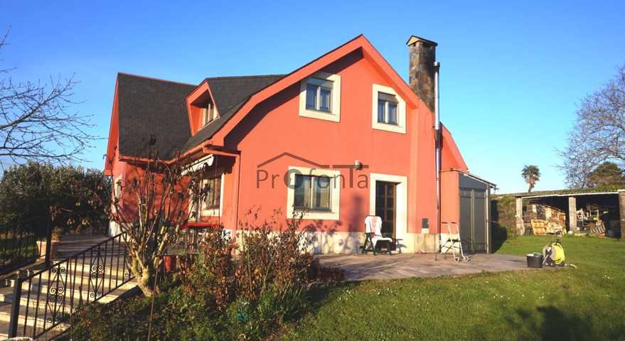 Casa en venta en Santa Cruz de Mondoi, Oza dos Ríos (A Coruña) Casa de aproximadamente 275 metros cuadrados construidos, distribuidos en: PLANTA BAJA: ... salón comedor, cocina amueblada, una habitación y un baño. PRIMERA PLANTA: cuatro habitaciones y un baño. Parcela totalmente cerrada de 2000 metros cuadrados con ambientes diferenciados: zona de barbacoa, huerto, árboles frutales y ornamentales, y varias construcciones auxiliares, entre las que destaca una de ellas habilitada con cocina y aseo, zona de aparcamiento con capacidad para tres coches y zona de almacenaje. Carpintería exterior de aluminio. Suelos de madera y gres. Calefacción de biomasa. Suministro de agua: Conectada a red de agua municipal y pozo. Alcantarillado Buena ubicación con excelente comunicación por carretera, a menos de diez minutos del centro de Betanzos, y dada la proximidad de la entrada de autopista-autovía, nos situamos a menos de veinte minutos en coche de A Coruña y a unos cincuenta minutos de ciudades como Santiago de Compostela o Lugo. Impuestos no incluidos Publicación a título informativo, no vinculante ni contractual, puede contener errores o estar sujeto a variaciones. Mostrar más