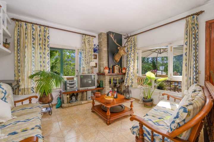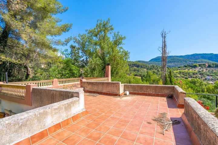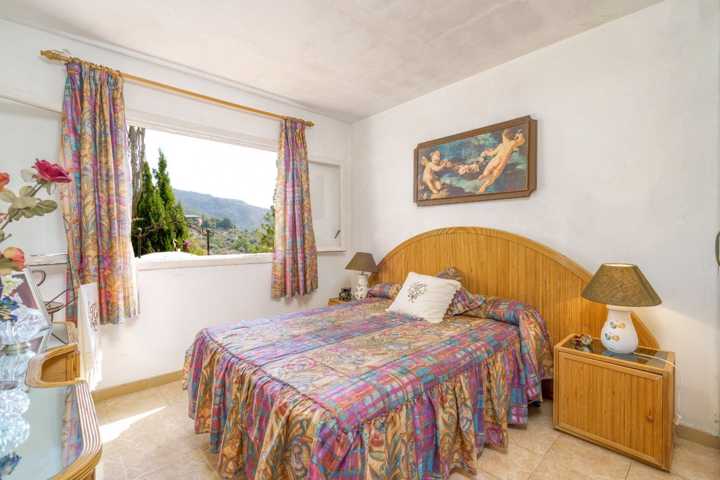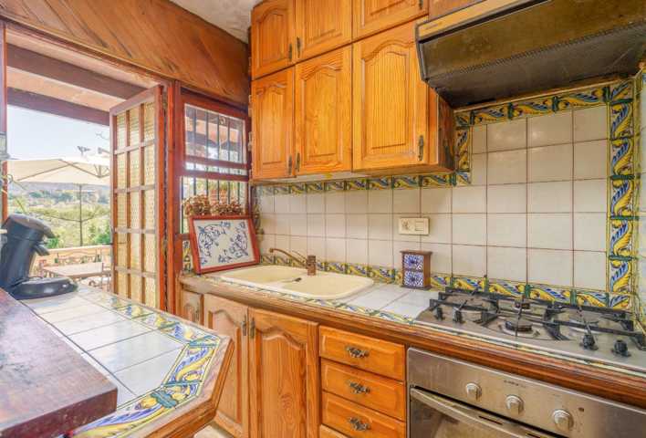 Cuenta de una superfici ...e construida de 295m2 en una parcela de casi 9.000m2, en plena Serra de Tramuntana. Se distribuye en una planta con 2 habitaciones dobles, un gran salón comedor luminoso con vistas a la piscina, una cocina equipada y un baño.