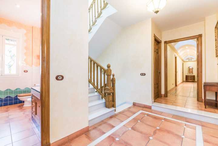 Seguimos con la primera planta, donde se ubica un bonito y coqueto hall de entrada, imperial salón con chimenea propia, preciosa cocina independiente con ambientes bien diferenciados, acompañada de lavadero y despensa particular, cuatro grandiosas habitaciones, tres de ellas, cuentan con vestidor propio y baño en suite. Además, en esta primera planta, apreciamos un precioso vestidor independiente, espacioso aseo equipado, porche-terraza donde podrás gozar de las mejores puestas de sol y enorme patio con piscina para poder disfrutar de los mejores momentos con amigos y familiares.