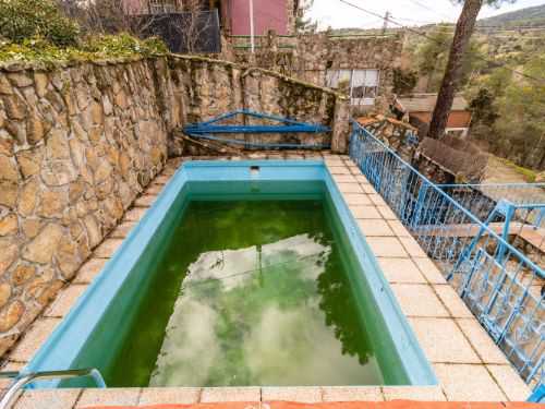 "Chalet de diseño rústico, en precioso entorno natural, situado en Santa María de la Alameda en la zona de el PIMPOLLAR (a 2.5 KM. de la estación) y 1 ...3 km. de San Lorenzo del Escorial. Construida en 1983, consta de una superficie de unos 181 m2 construido, distribuidas de la siguiente forma: PLANTA BAJA: Cocina, salón comedor y dos dormitorios de paso, un trastero, una terraza, 1 baño garaje y altillo para los depósitos de combustible. PLANTA PRIMERA: salón, cocina, cuarto de baño con plato de ducha, 4 dormitorios. CASETA PARA LEÑERA Y ALGIBE: la leñera y un trastero, cuanta con espacio suficiente para guarda tanto leña como utensilios de jardín. CASETA PARA DEPURADORA: esta caseta alberga la maquinaria de la piscina y tiene espacio de almacenaje. *la finca tiene un poco de agua propio. *La casa cuenta con varios terrazas, techos y paredes de gotelé, suelos de gres, persianas carpintería exterior de aluminio,. *La vivienda cuenta con una parcela de 330 metros cuadrados. *El jardín cuenta con muchísimas plantas y árboles. Si te gusta los parajes únicos ven a visitarla." EL MUNICIPIO Santa María de la Alameda ocupa una reducida parte de la Comunidad de Madrid y se sitúa en el extremo septentrional de la Sierra Oeste, muy cerca de las provincias de Ávila y Segovia, y a tan solo 71 kilómetros de la capital. Una localización perfecta para los vecinos de la gran ciudad que eligen esta comarca para realizar alguna escapada y conectar con la naturaleza. Importantes pueblos colindantes como San Lorenzo de El Escorial o Robledo de Chavela potencian aún más el interés turístico de la zona. La población se distribuye en ocho entidades diferenciadas: Santa María de la Alameda (capital del municipio y sede consistorial), La Estación de Santa María de la Alameda, Navalespino, Robledondo, La hoya, La Paradilla, Las Herreras y El Pimpollar. Cuando pongas el pie en el casco del pueblo verás que, aparte de la tranquilidad que se respira, posee un patrimonio monumental y cultural muy valioso que espera ser descubierto: la iglesia de Nuestra Señora de la Alameda (s. XVI), su emblemática Plaza Mayor, puentes como el de Los Siete Ojos, fortines de la Guerra Civil, el antiguo lavadero… En suma, muchos y variados motivos para prolongar tu estancia. Descubre porque somos un pueblo de altura: Santa María de la Alameda es el término más septentrional de la comarca “Sierra Oeste” de Madrid, está situada a 65 kilómetros de la capital, en los límites de Ávila, Segovia y Madrid. Dentro de la provincia de Madrid linda con los municipios de San Lorenzo de El Escorial, Robledo de Chavela, Zarzalejo y Valdemaqueda. Los ríos Cofio y Valtravieso se juntan formando el límite de los términos de Santa María de la Alameda y Las Navas del Marqués y entre la Comunidad de Madrid y la de Castilla y León. PATRIMONIO CULTURAL De trazos irregulares y delicadas construcciones, así son las calles que forman el centro urbano de la localidad. En sus vías más importantes se aprecia la arquitectura típica serrana con muros de piedra y bellas balconadas. Todo recorrido tiene un punto de partida común, la plaza de la Constitución, eje neurálgico de Santa María de la Alameda. Allí se levanta, dominando el espacio, el Ayuntamiento, construido en el siglo XIX. Frente a él asoma la iglesia de Nuestra Señora de la Alameda, mezcla de estilos gótico y barroco, fue construida en el siglo XVI. Mención especial merecen el retablo del altar mayor, el ábside de mampostería con contrafuertes de sillería de granito y la bóveda de crucería de la cabecera, joyas de un edificio que tuvo que ser restaurado tras la Guerra Civil. Una de sus obras civiles más significativas es la vieja estación levantada en 1863, de la cual aún se conserva el edificio de viajeros y el muelle. Una bella construcción que servía de parada en el trayecto ferroviario entre Madrid y Ávila. Mostrar más
