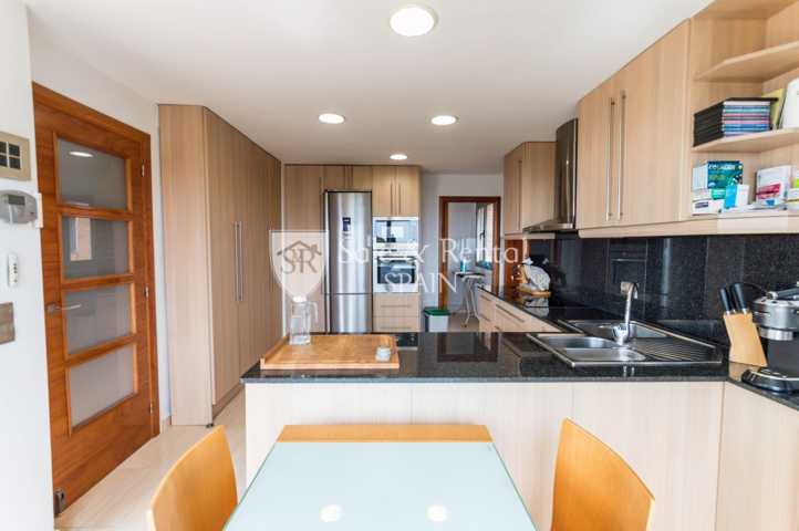 Al bajar, encontramos un total de 2 dormitorios dobles y un precioso baño. En esta misma planta está el amplio salón-comedor con vistas al mar y mucha luz natural, ya que tiene salida a una gran terraza que comunica con una fantástica cocina completamente equipada, con zona de comedor y un lavadero.