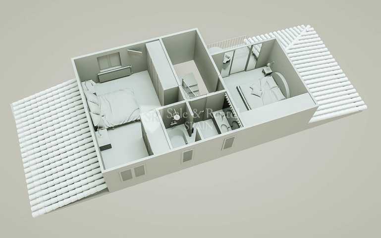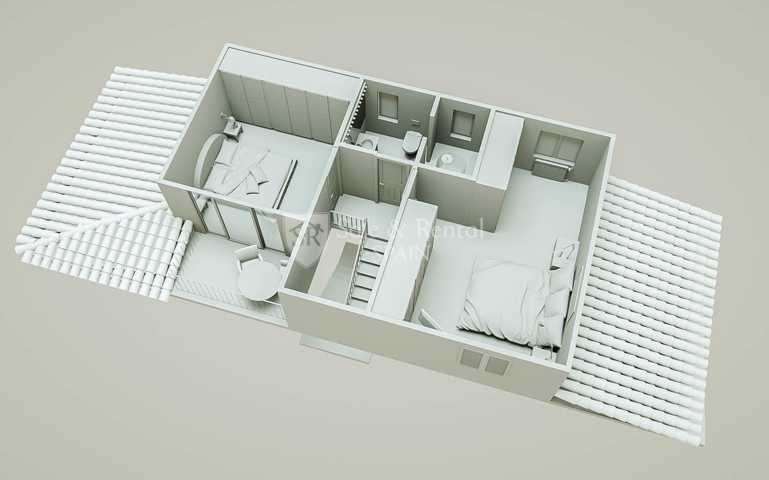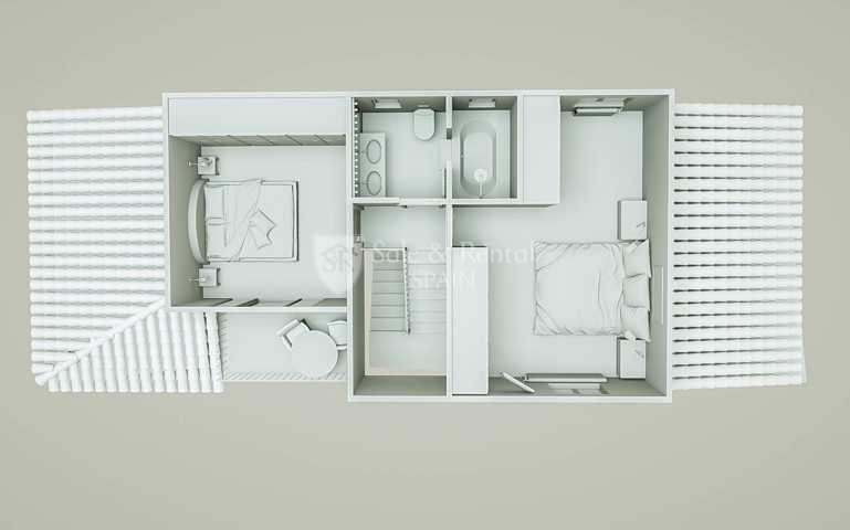 En la planta superior está la zona de dormitorios, con un dormitorios doble y un bonito balcón. Hay otro dormitorio triple y un baño completo con bañera. Cabe destacar que ambos dormitorios disponen de armarios empotrados.