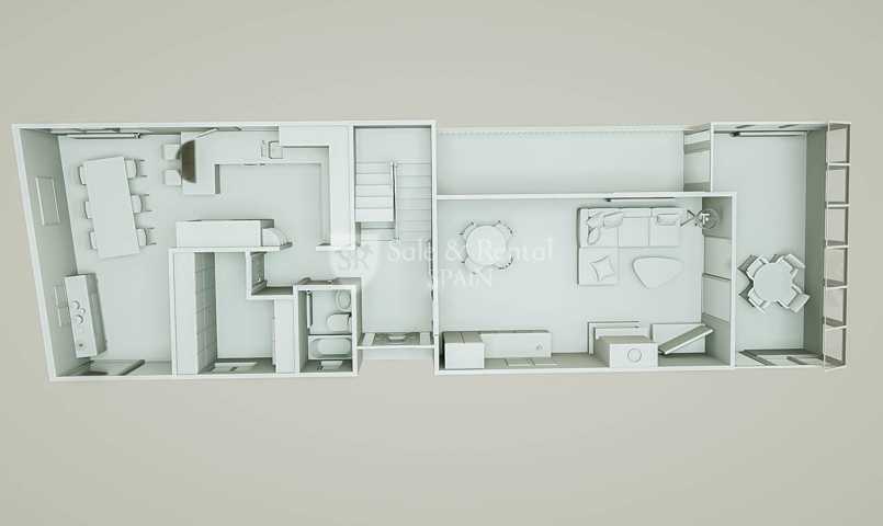 En la primera planta encontramos la entrada principal a la casa, un aseo, una gran cocina estilo office y barra de desayuno y la zona de lavandería. Además también encontramos un bonito salón comedor con chimenea de mármol y una fantástica terraza cubierta y acrisolada que se utiliza como comedor de invierno, con unas preciosas vistas al mar y la montaña.