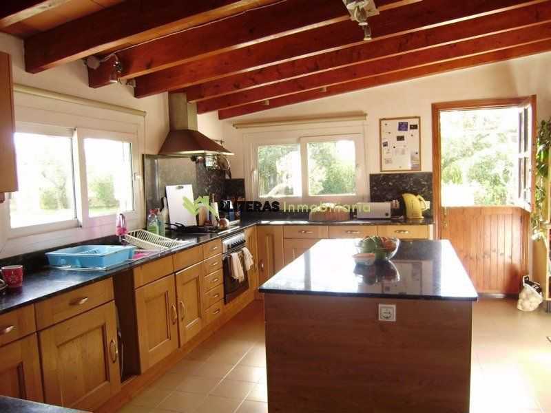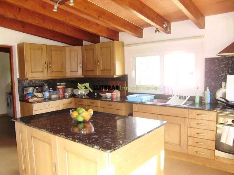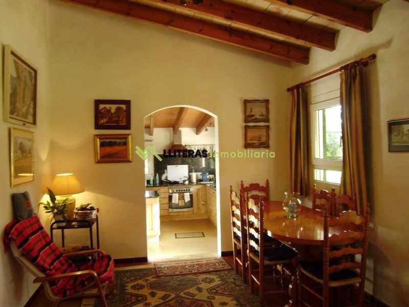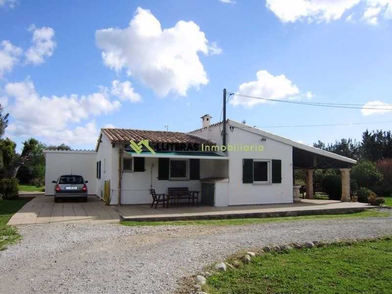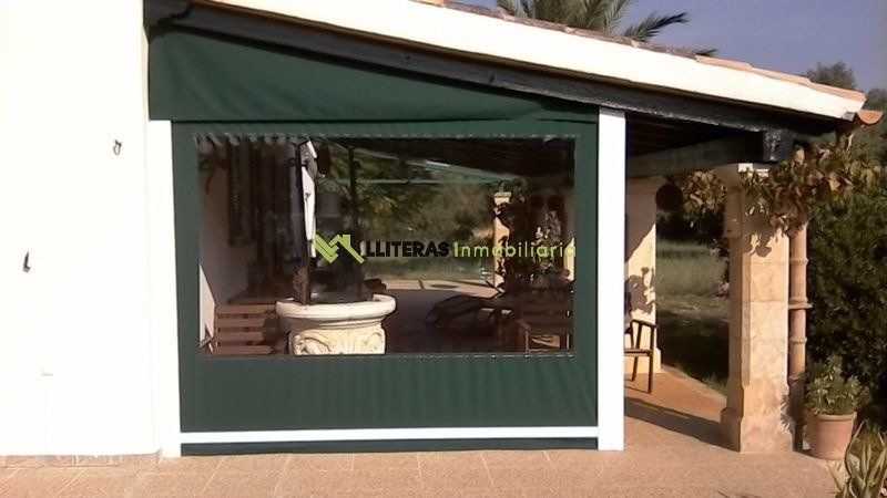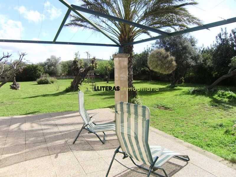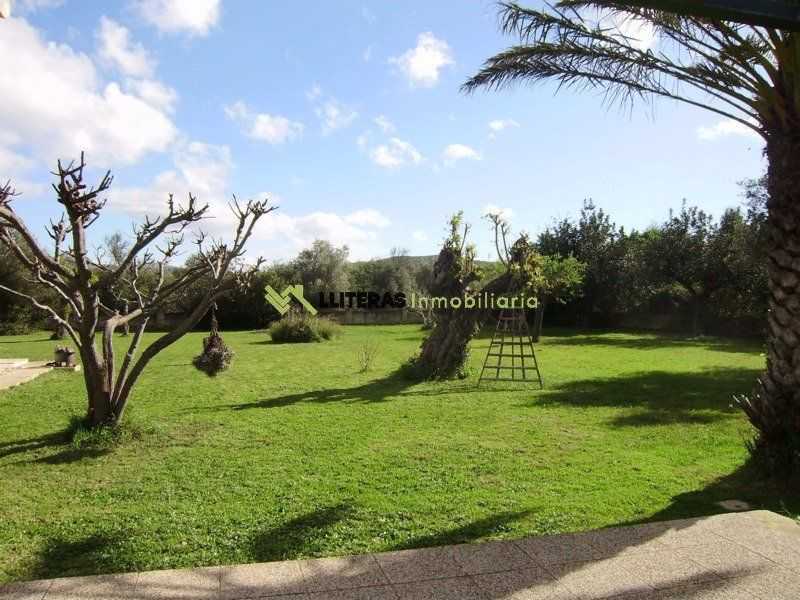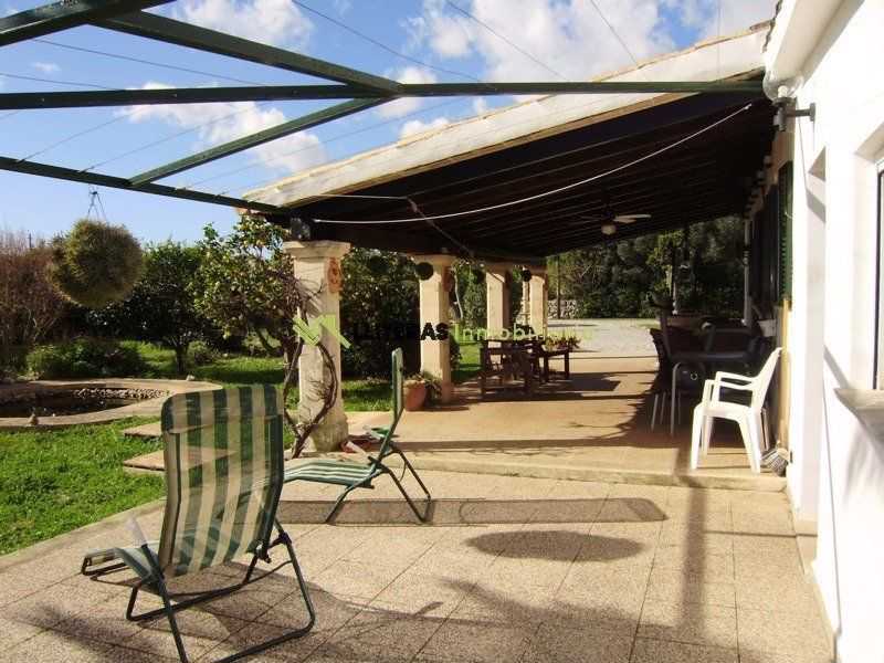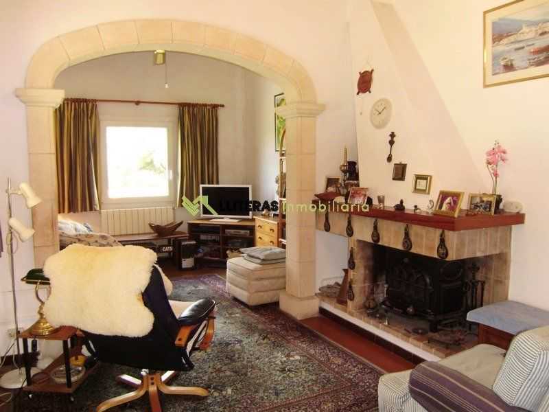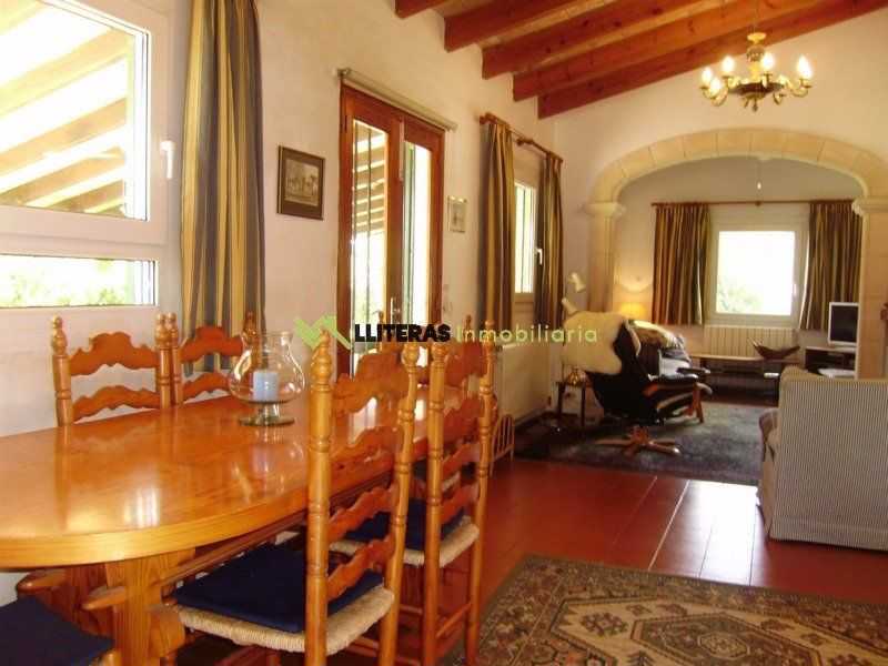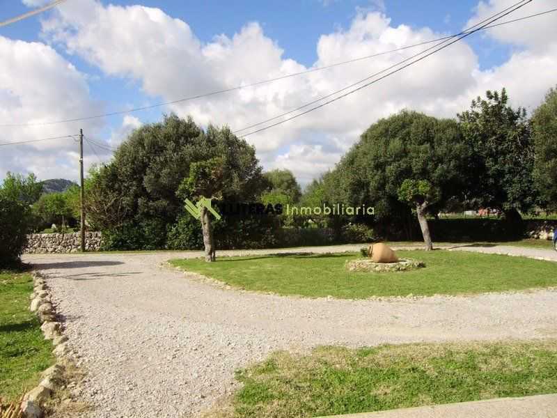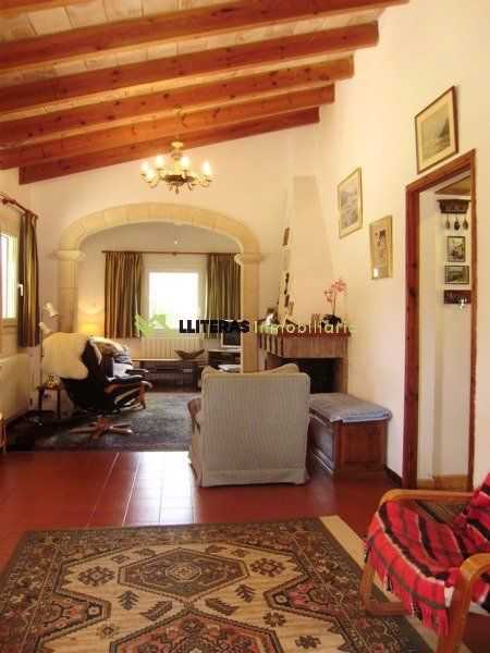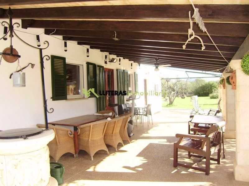 El acceso a la finca conduce a una amplia zona de aparcamiento. La vivienda cuenta con un amplio porche techado que da acceso al interior, un amplio salón comedor con techos con vigas de madera, un arco típico mallorquín y una chimenea de hierro (a gas).