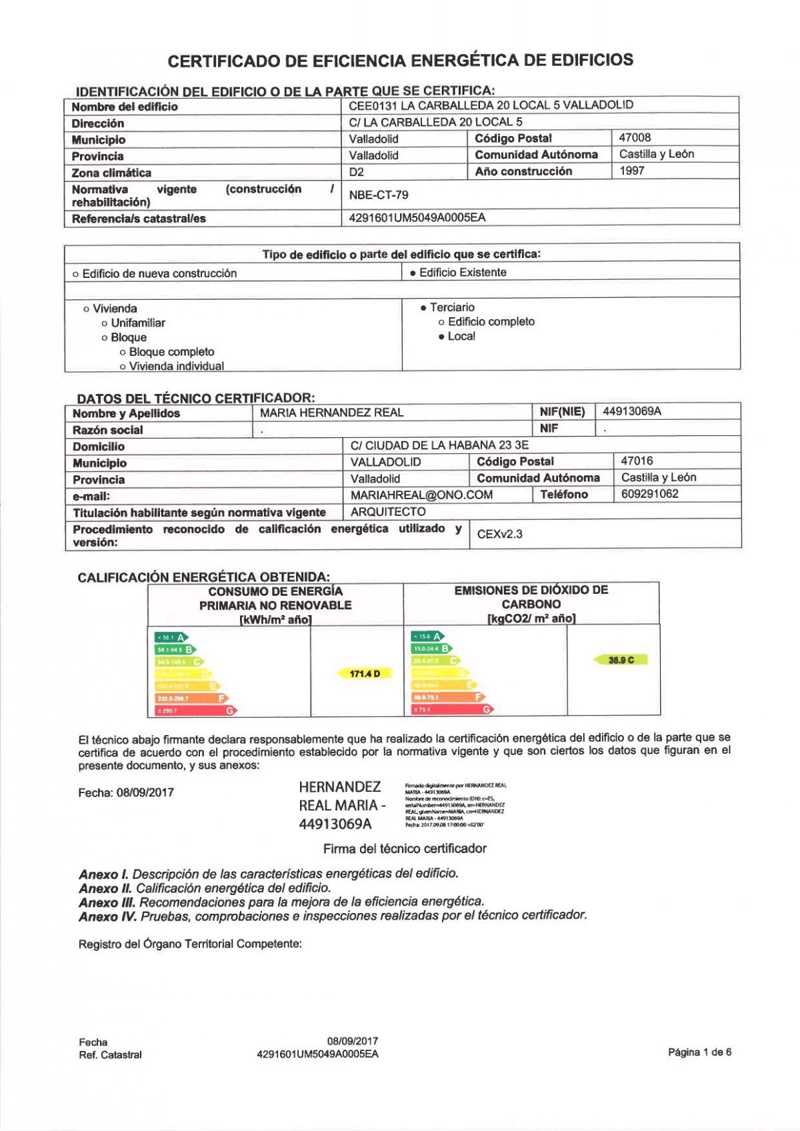 171 KW h/m² Emisiones: C 35 Kg CO₂/m²