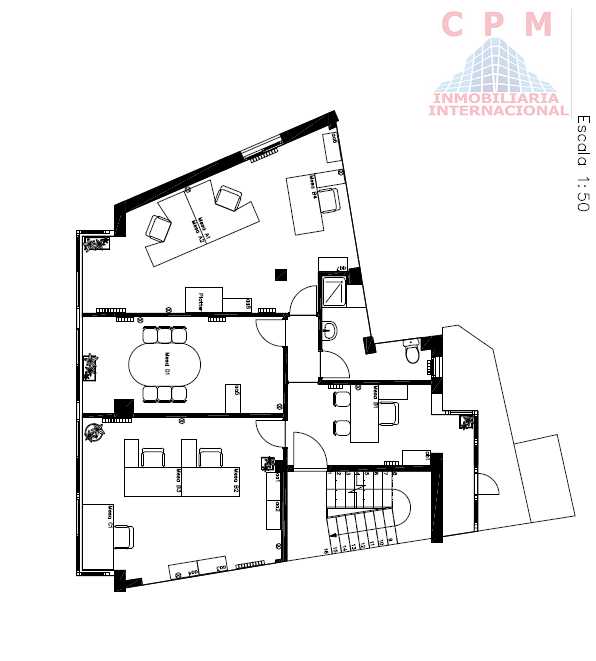 La Inmobiliaria Internacional CPM gestiona esta estupenda y luminosa oficina amueblada de 100 m2, dos grandes despachos y una sala de juntas, próxima ...al metro de Francos Rodríguez, que consta de los siguientes elementos: