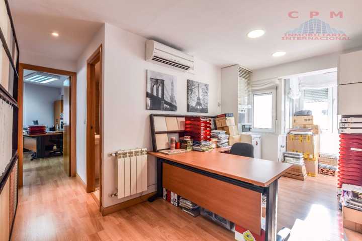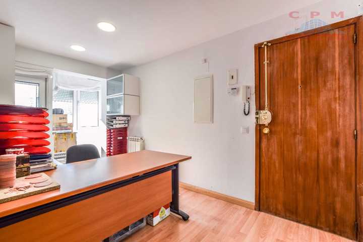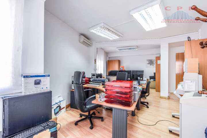 La oficina amueblada dispone de suelo de tarima de madera natural, aire acondicionado con bomba de frío/calor, puerta blindada, puerta de seguridad, calefacción y agua caliente por caldera individual de gas natural.