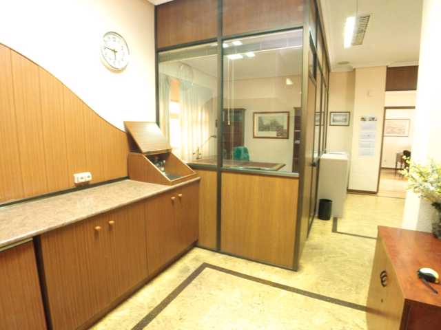 Dividido en 12 despachos, salas de juntas grandes y pequeñas. Dispone de zona de office, almacenes y dos aseos con ventanas.