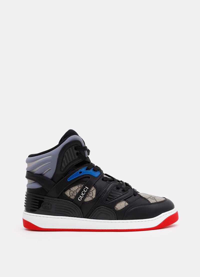 Zapatilla de Gucci homenaje a las deportivas de baloncesto de los años 90. Caña alta. Insertos de lona GG. Cierre de cordones. Logo en el exterior. He ...cha en Italia. Talla normal, elige tu talla habitual. Tallaje italiano. Material: 100% demetra. Un material fabricado con materias primas no animales obtenido principalmente de fuentes sostenibles, renovables y con base biológica.
