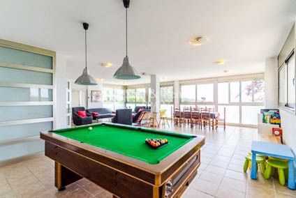En la primera planta encontramos una gran sala de unos 100m2, con billar y salida a jardín.